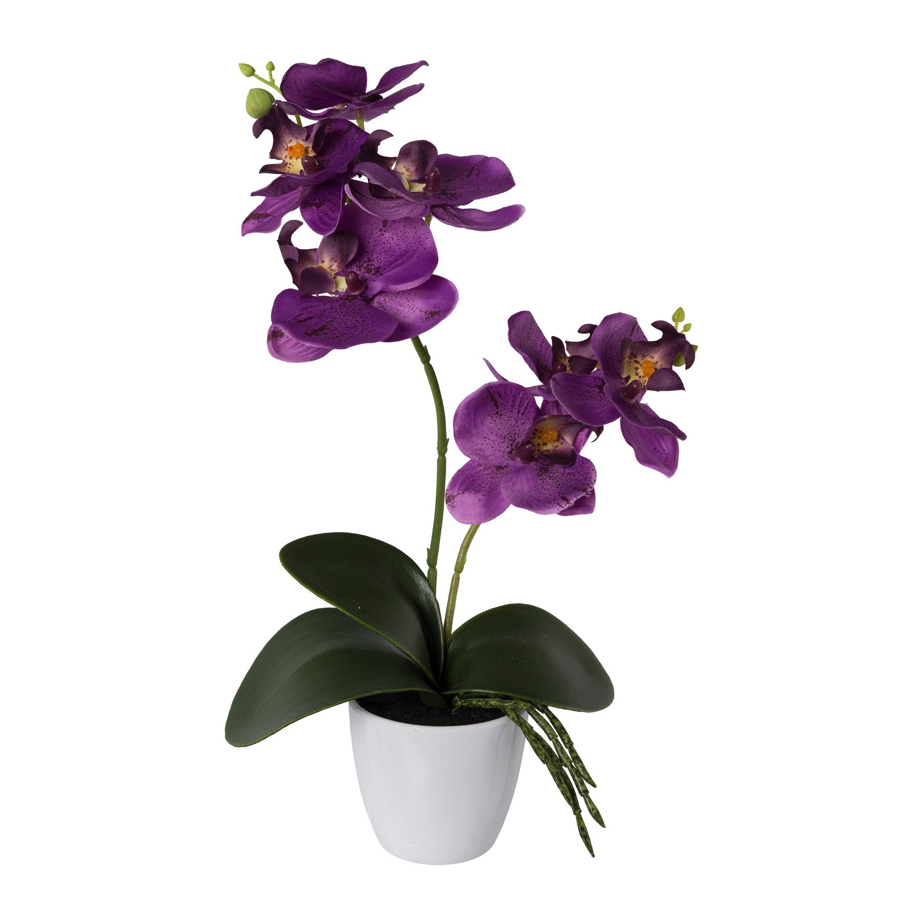 2er Set Künstliche Orchideen Phalaenopsis 36 cm in 4 Farben im Kunststofftopf