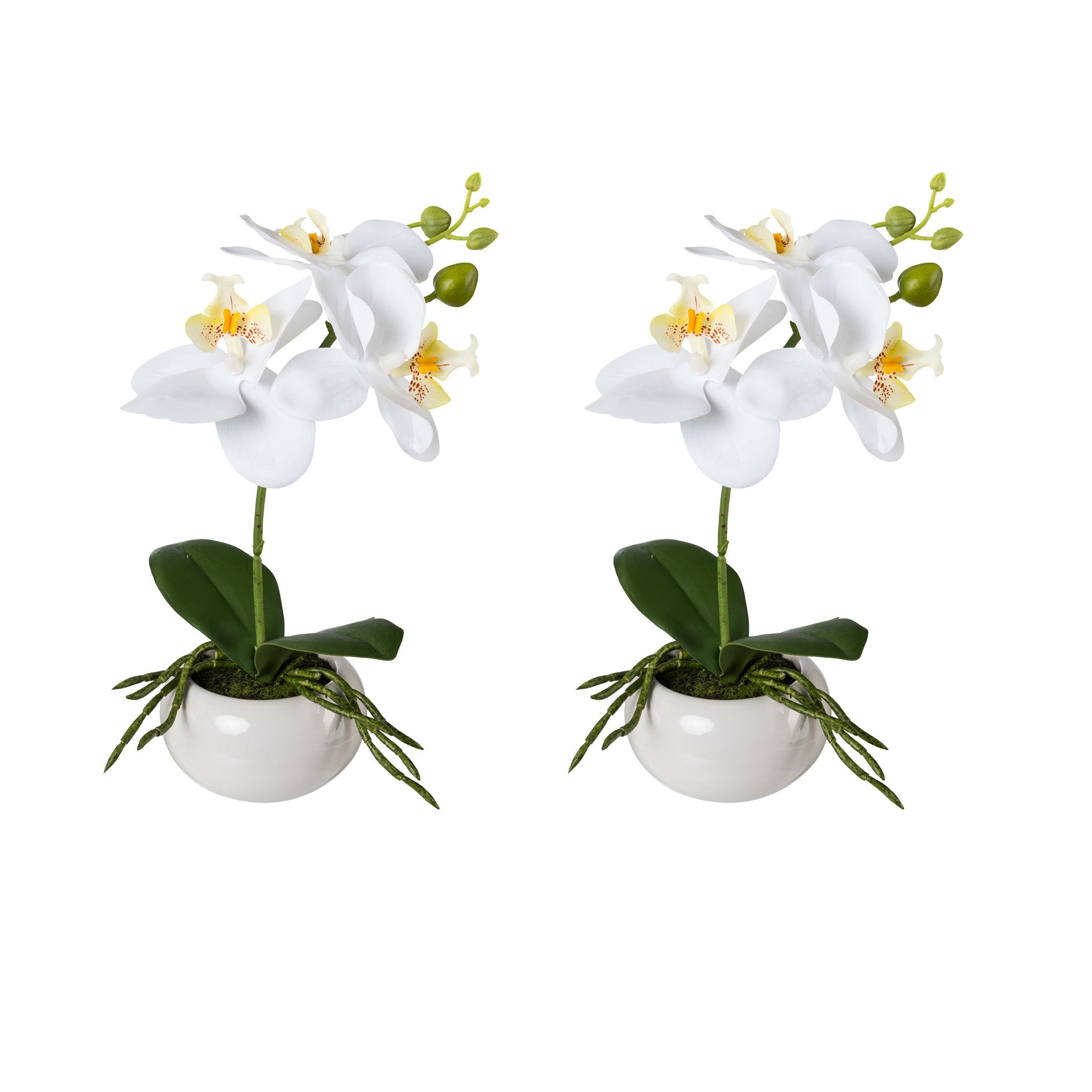 2er Set Phalaenopsis Kunstpflanze in 27 cm Keramikschale, weiß, Real Touch Deko