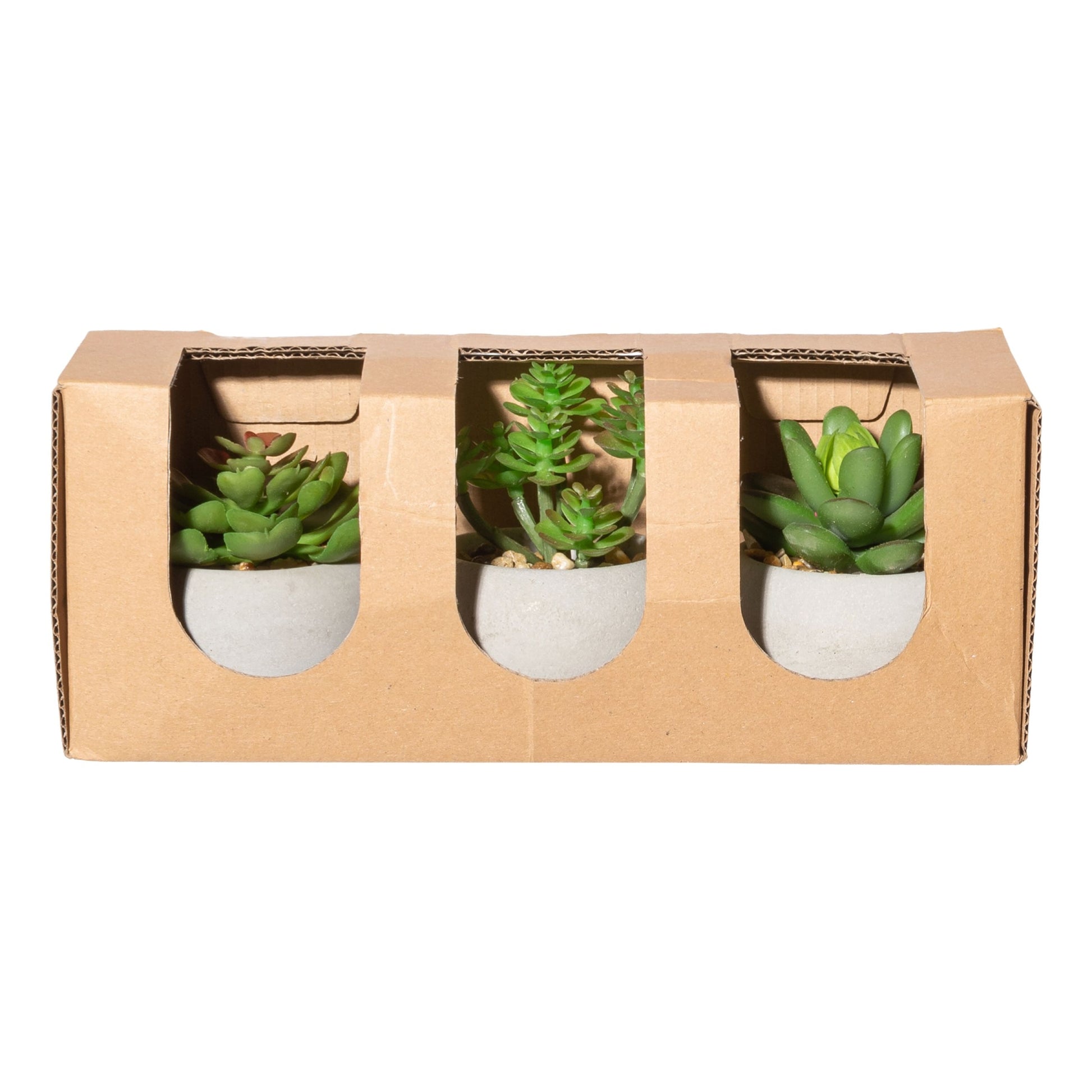 2er Set Sukkulenten 3-fach sortiert, Kunstpflanzen mit Zementtopf und Kies 6x4cm