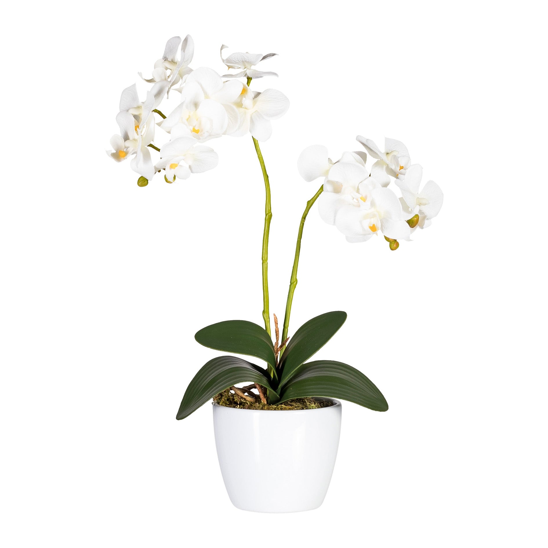 2er Set Phalaenopsis Orchidee – Weiß – Kunstpflanze im Keramiktopf