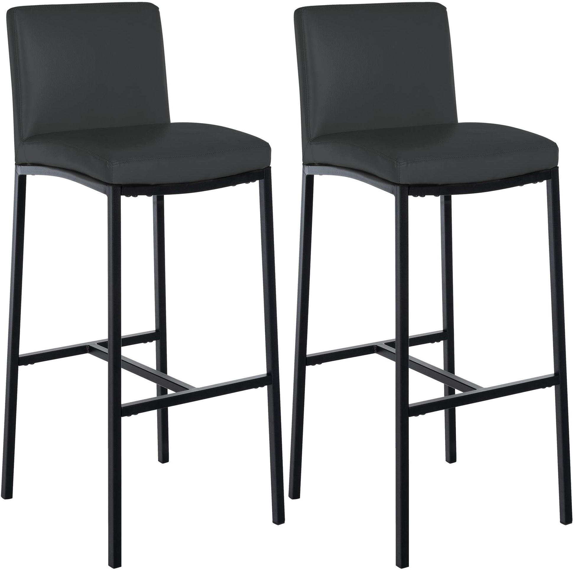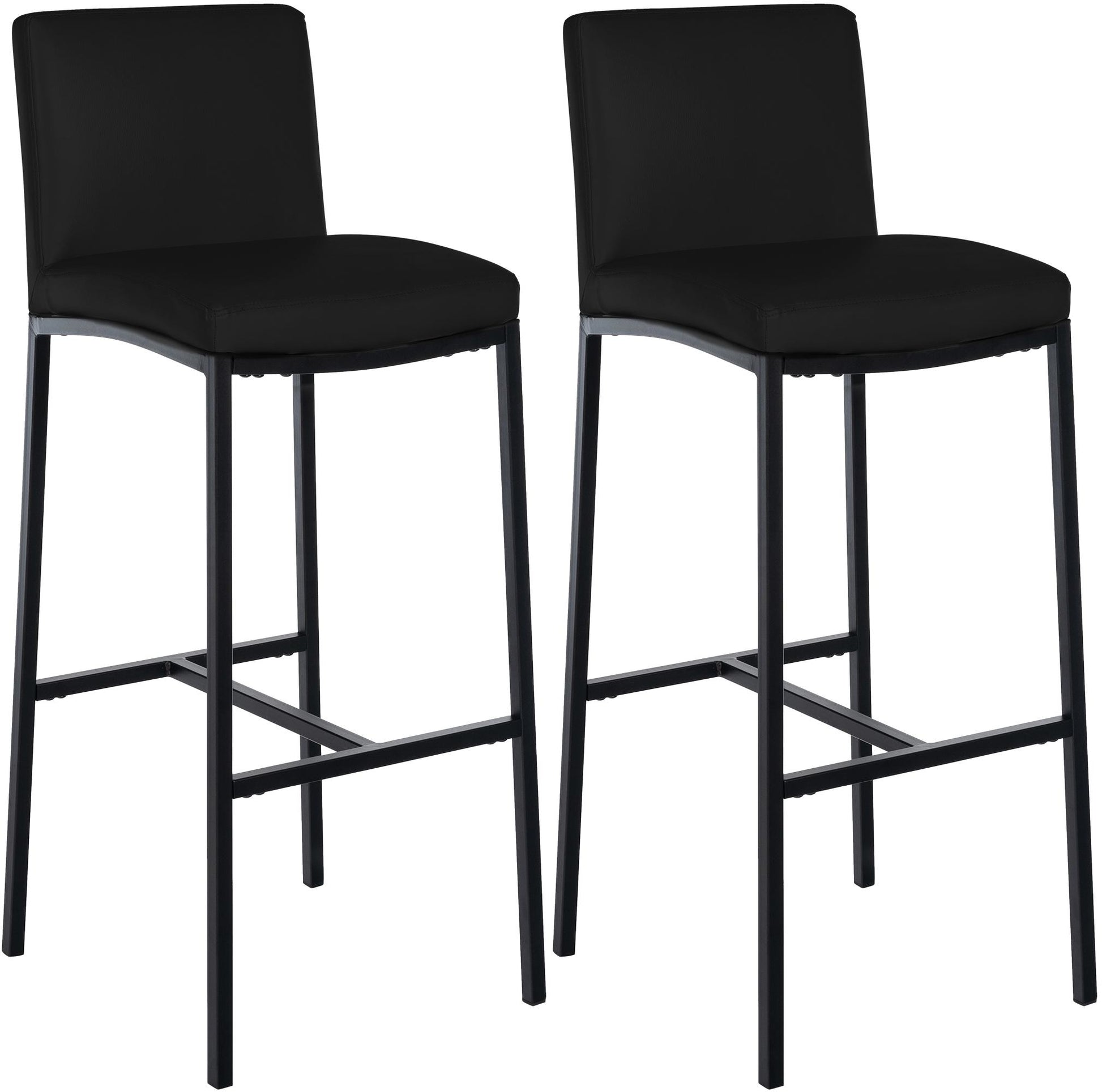 Die gepolsterte Sitzfläche sorgt für Komfort auch bei längerem Sitzen, während die eingebaute Fußablage eine angenehme Haltung unterstützt. Das Metallgestell in matt schwarzer Optik bringt eine elegante Note und gleichzeitig Strapazierfähigkeit bis zu einer Belastung von 120 kg. Dank der Bodenschoner bleibt Ihr Boden frei von Kratzern.