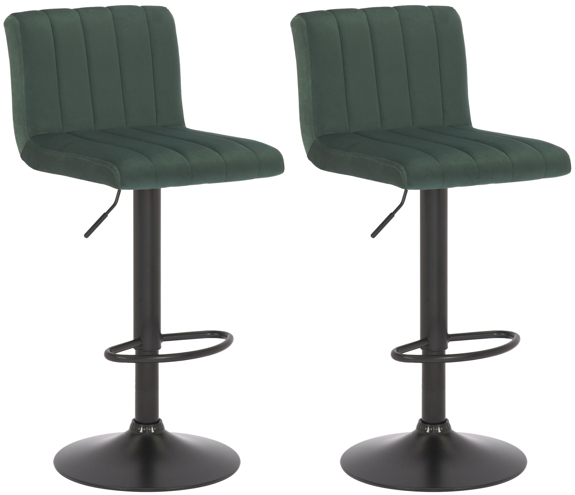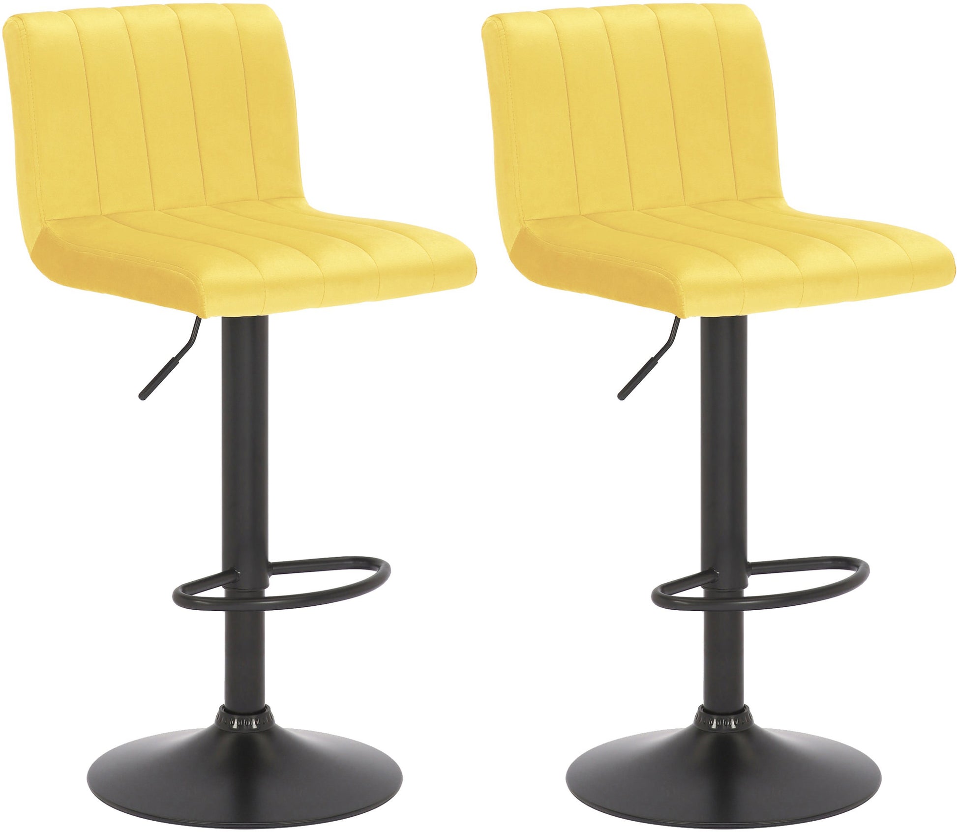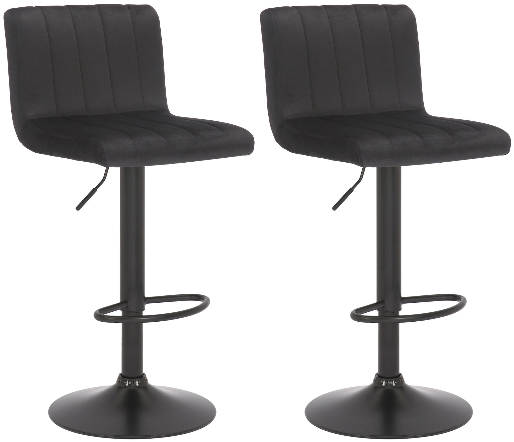 Die Barhocker Jamie aus diesem 2er Set sind mit ihren senkrechten Stepp-Mustern ein toller Blickfang. In Kombination mit den matt-schwarzen Gestellen passen diese Hocker ideal in modern eingerichtete Räume.