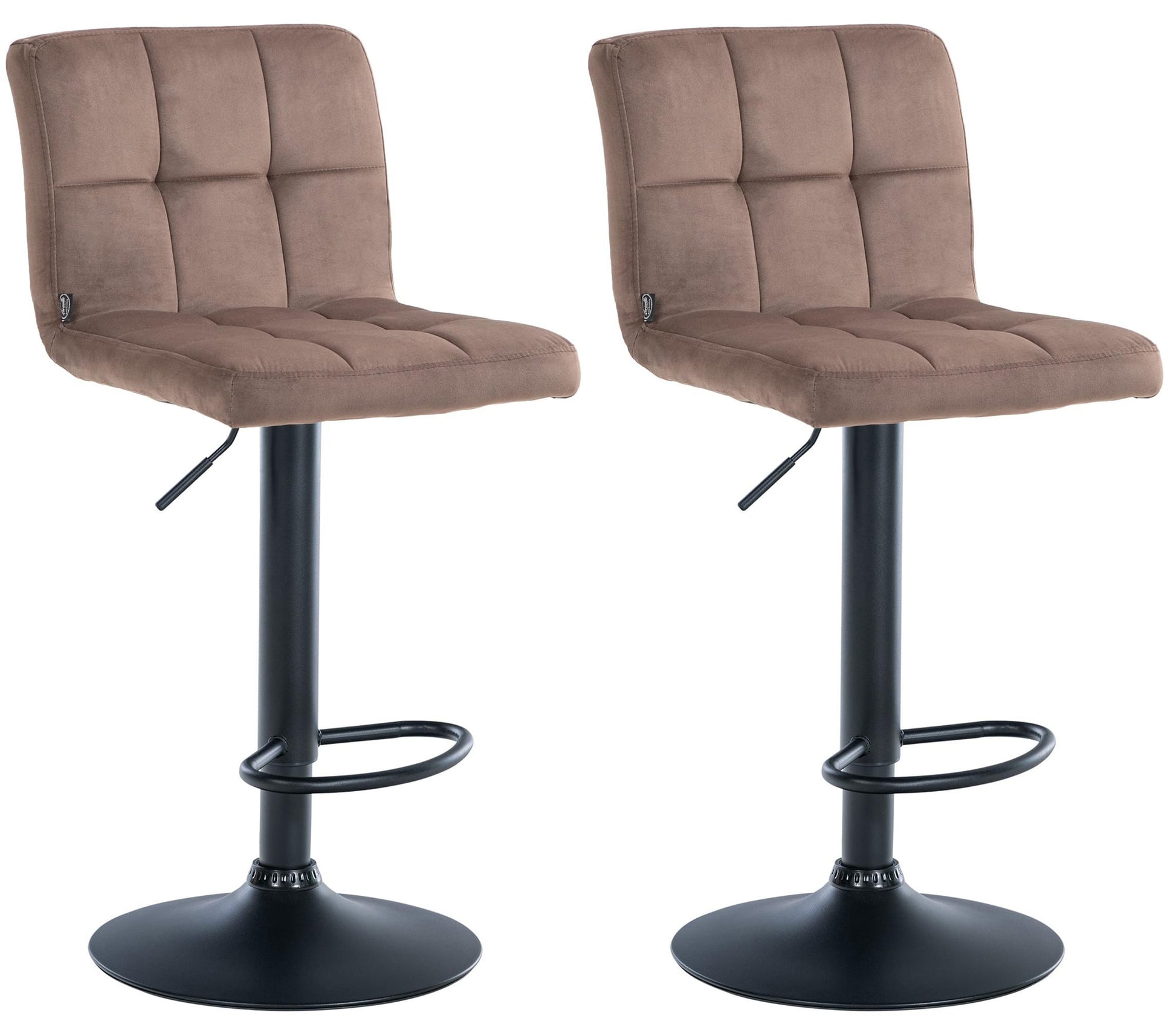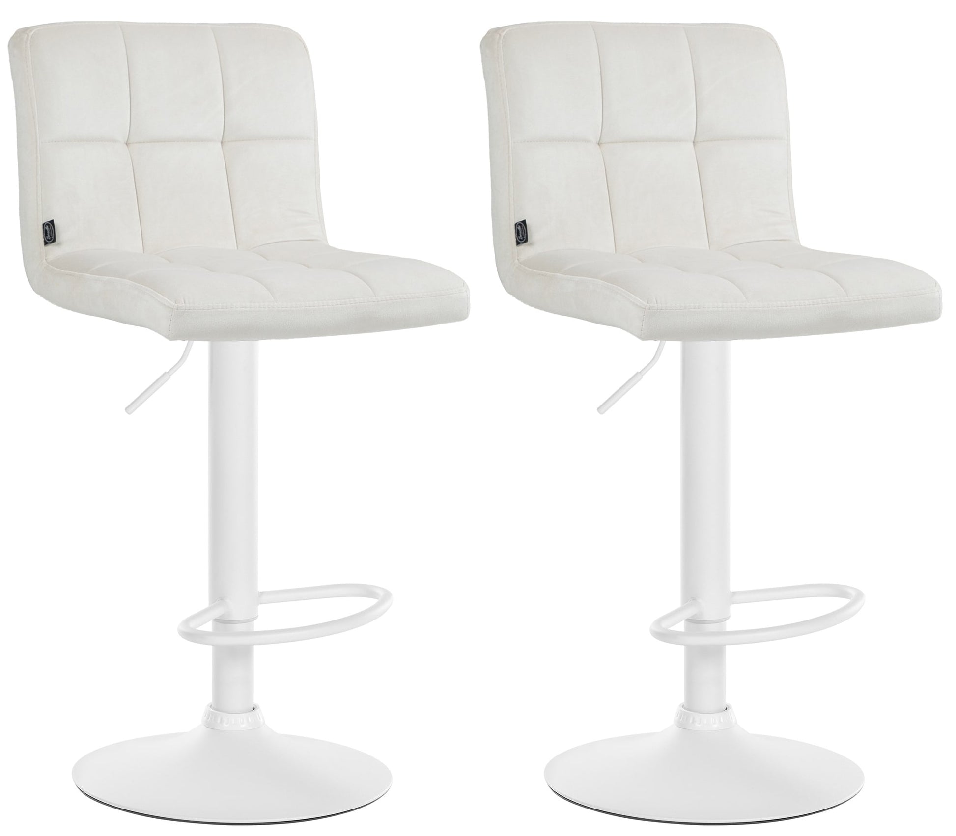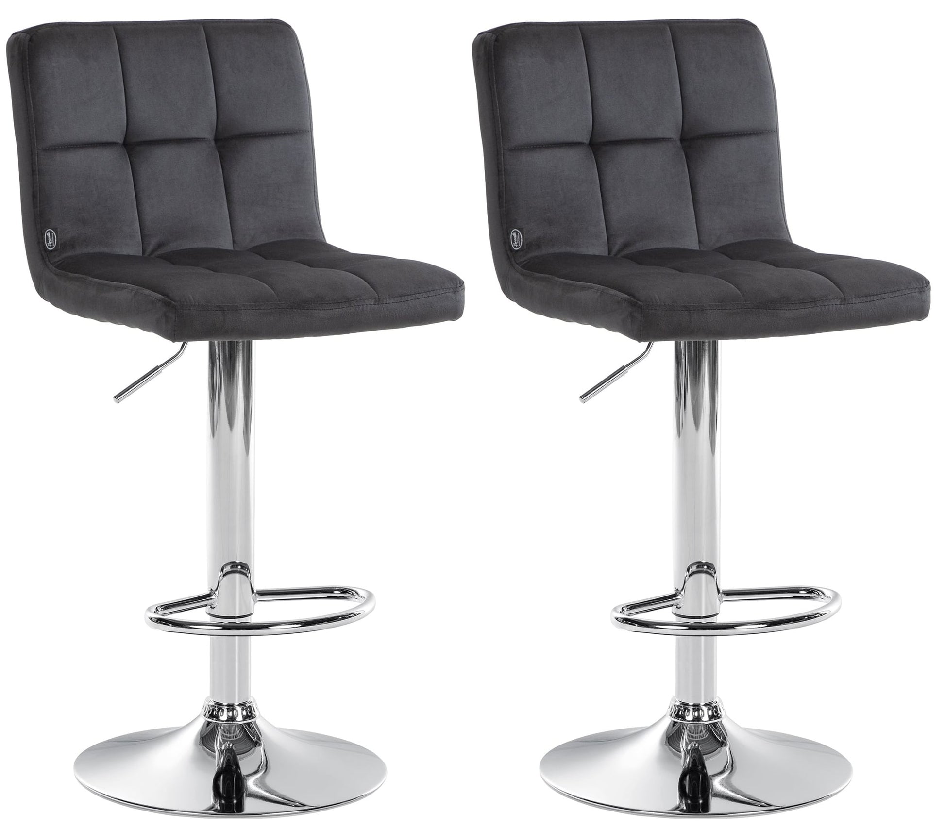 Das 2er Set Barhocker Peru Samt bietet eine funktionale und stilvolle Sitzlösung für Küchen- und Barbereiche. Die Höhenverstellbarkeit und die 360-Grad-Drehfunktion der Barstühle ermöglichen eine flexible Anpassung an verschiedene Umgebungen und Bedürfnisse. Der gesteppte Samtbezug und das robuste Metallgestell sorgen für eine dauerhafte Nutzung und einfache Pflege. Die Trompetenfüße der Hocker sind mit integrierten Fußstützen ausgestattet, die zusätzlichen Komfort bieten, während Bodenschoner die Fußböden vor Abnutzung schützen. Das Set ist einfach zu montieren, was eine schnelle und unkomplizierte Inbetriebnahme ermöglicht.
