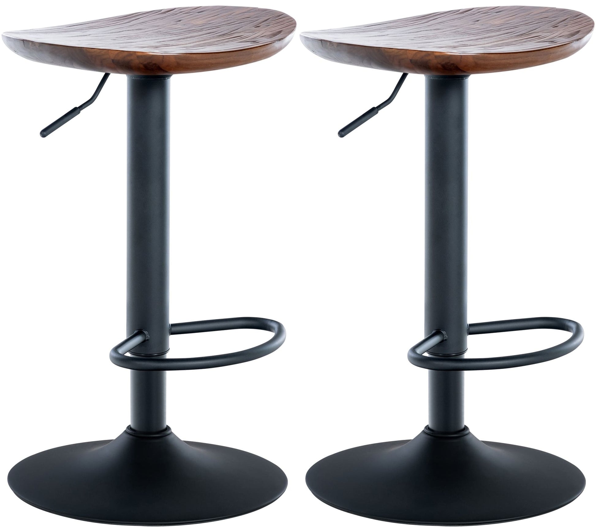 Die Sitze dieser Tresenstühle bestehen komplett aus massivem Holz aus FSC-zertifiziertem Anbau. Mit seinen guten Festigkeitseigenschaften ist es damit ideal geeignet für die Fertigung hochwertiger Möbel. Das Gestell aus schwarz-mattem Metall verfügt über eine angenehme Fußablage und ist darüber hinaus äußerst bodenschonend, sodass es empfindliche Böden nicht beschädigt.