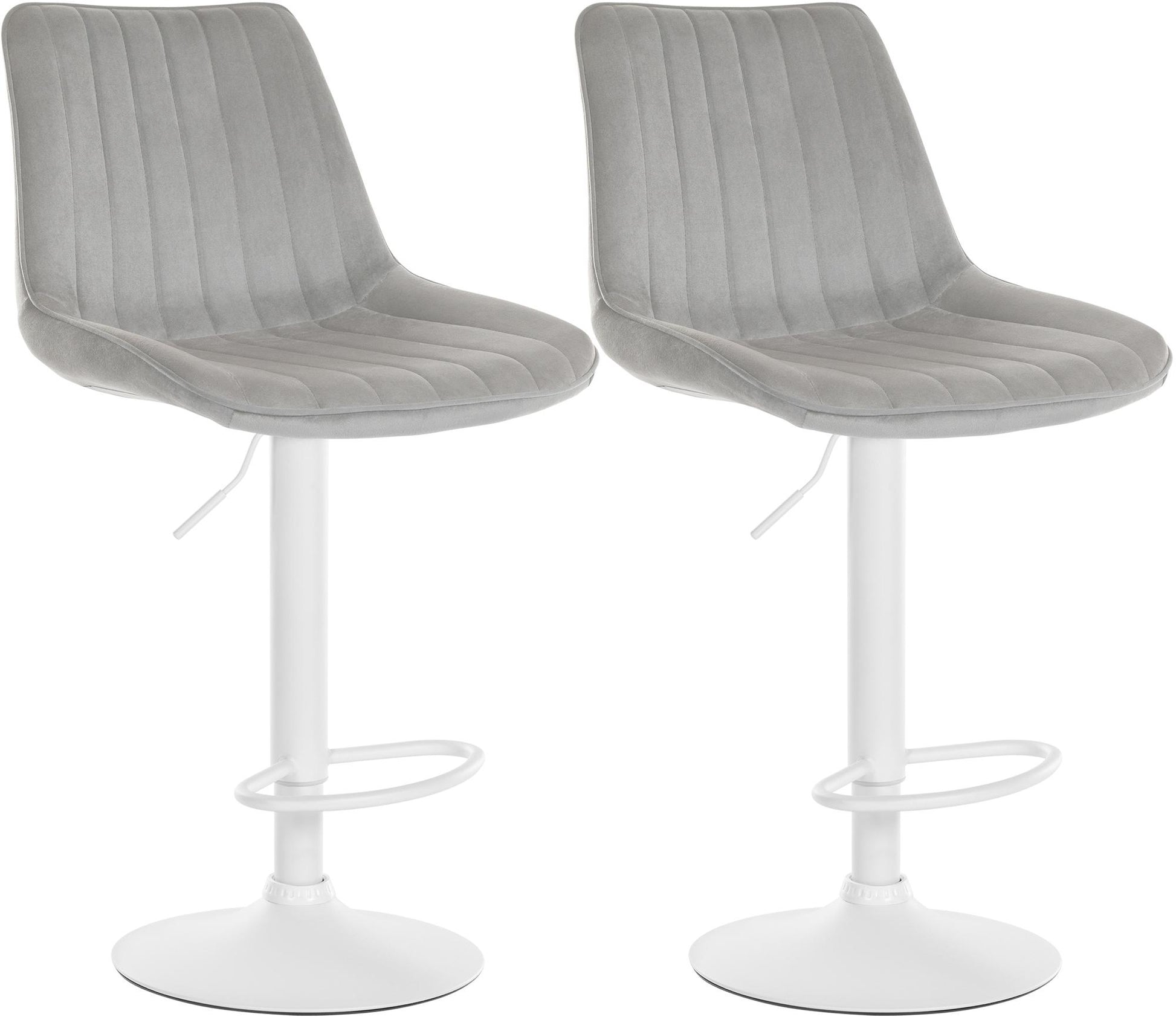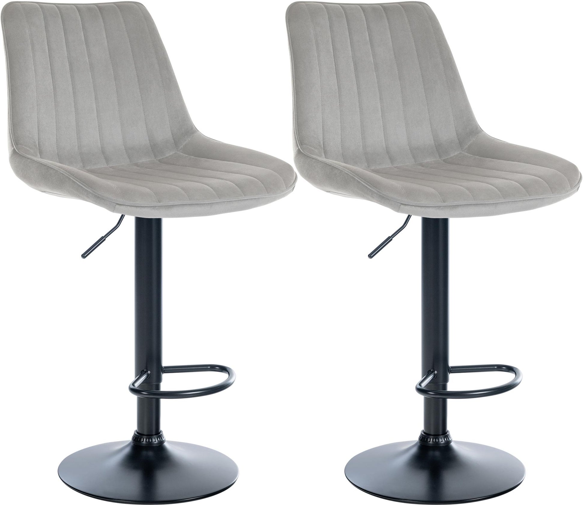 Dieses moderne Barhockerset kombiniert zeitloses Design mit optimalem Sitzkomfort. Der gepolsterte Sitz und die Rückenlehne ermöglichen stundenlanges bequemes Sitzen. Mit pflegeleichtem Samtbezug und stabilem Metallgestell inklusive Trompetenfuß bieten die Hocker höchste Stabilität. Frei wählbare Farbkombinationen passen sich jedem Wohnambiente an. Die geschwungene Fußstütze und der Gaslift für stufenlose Höhenverstellung machen die Hocker ideal für jede Theke. Genießen Sie modernes Design, erstklassigen Komfort und maximale Anpassungsfähigkeit mit diesem Barhockerset.