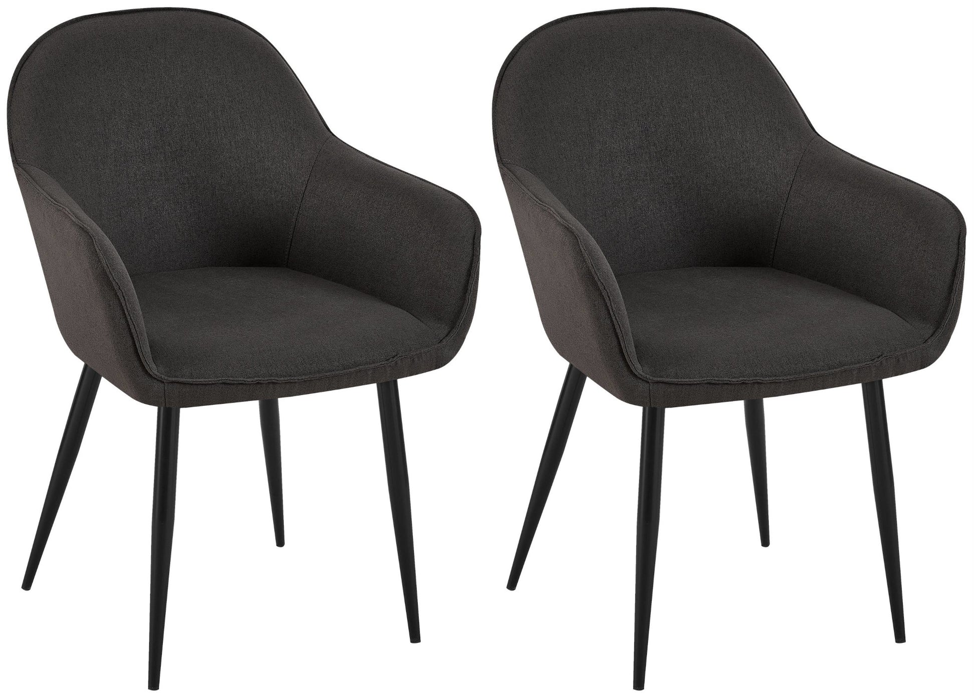 Die Esszimmerstühle Boise sind eine bequeme und zugleich stilvolle Sitzgelegenheit für den täglichen Gebrauch. Die Stühle verfügen über eine großzügig gepolsterte Sitzfläche und ermöglichen somit ein angenehmes Sitzen auch über einen längeren Zeitraum hinaus. Ergänzt wird der Sitzkomfort durch die Rückenlehne und die Armlehnen. Das Vierfußgestell aus Metall verspricht Stabilität und sicheren Stand. Diese Esszimmerstühle verleihen ein modernes Flair und ergänzen wunderbar jedes Wohnambiente. Zudem befinden sich Bodenschoner unter den Füßen, die ein Verkratzen des Bodens verhindern.
