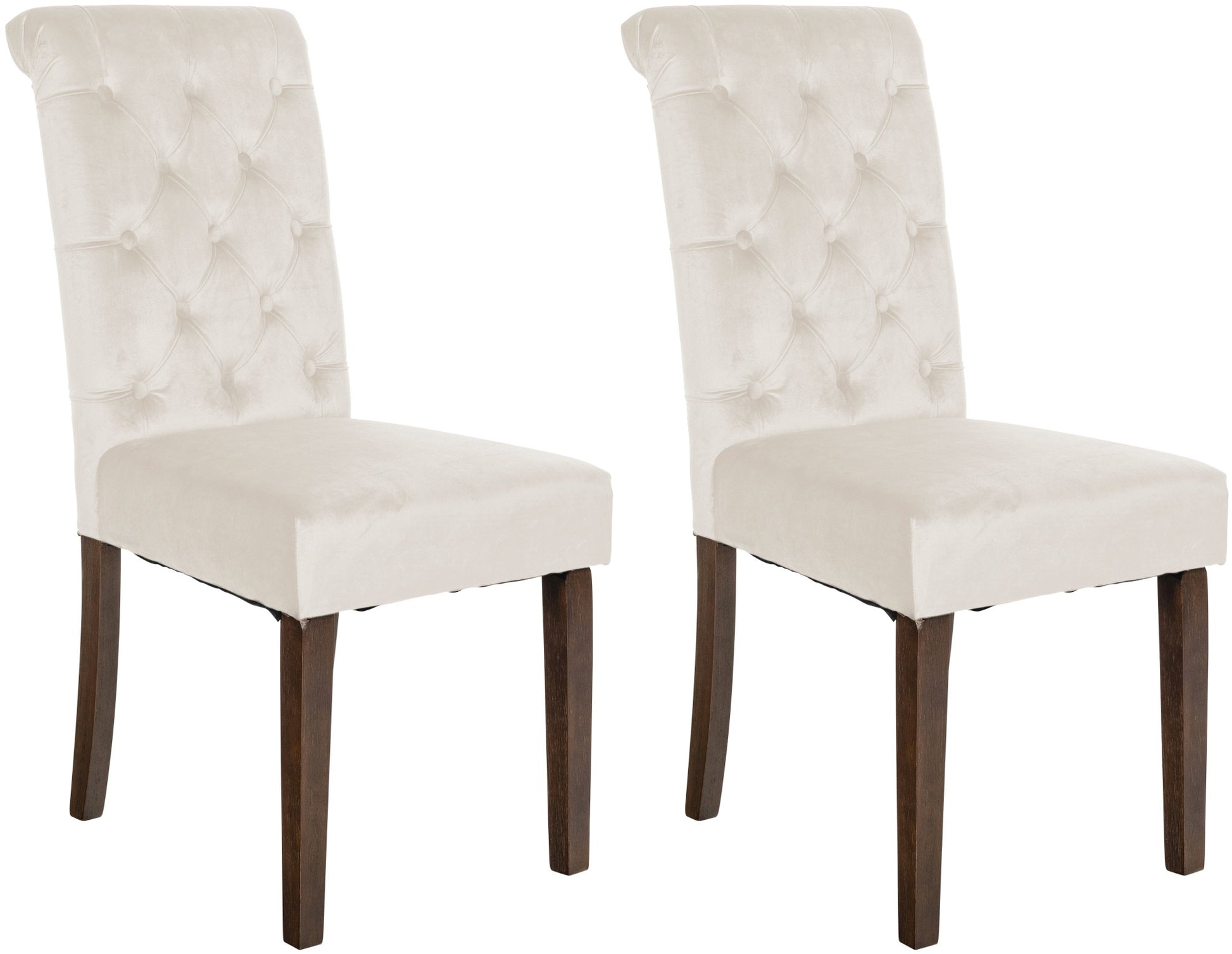 Die Esszimmerstühle Lisburn sind bequeme, solide und zugleich stilvolle Sitzgelegenheiten für den täglichen Gebrauch und die perfekte Ergänzung zu klassisch eingerichteten Räumen. Die hohe Rückenlehne und die angenehme und komfortable Polsterung ermöglichen ein bequemes Sitzen auch über einen längeren Zeitraum hinaus. Dabei stehen diese Lehnstühle stabil und standsicher auf einem Vierfußgestell aus Kautschukholz. Ausgestattet mit Bodenschonern unter den Füßen, werden Kratzer und Beschädigungen am Boden verhindert. Des Weiteren sind die Esszimmerstühle dank der pflegeleichten Materialien jederzeit schnell und einfach zu reinigen.