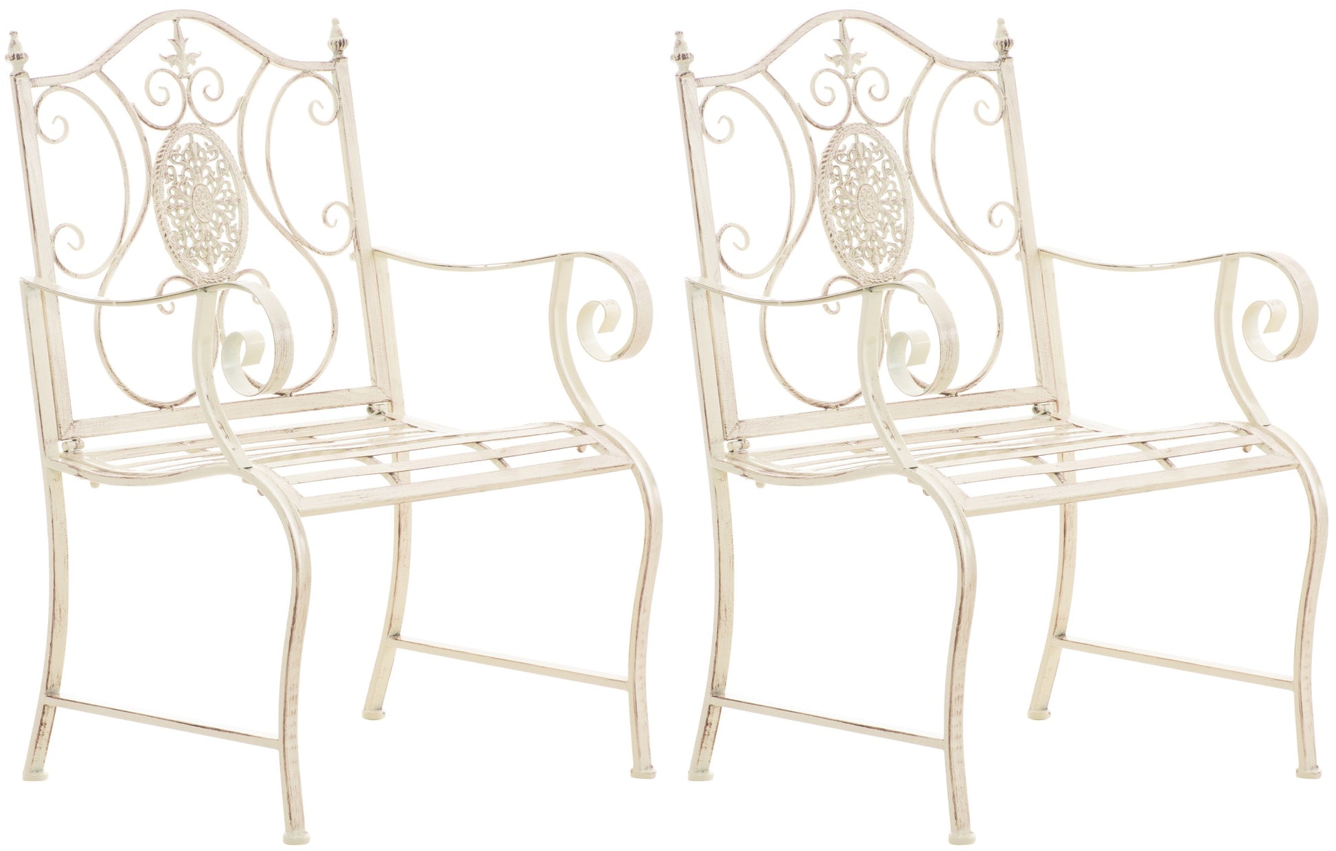 Der Set bestehend aus zwei Gartenstühlen Punjab ist mit seinen Verzierungen im Jugendstil gehalten und eignet sich für nostalgische Gärten, Terrassen und Balkone. Aber auch im Innenbereich, können die Stühle verwendet werden.