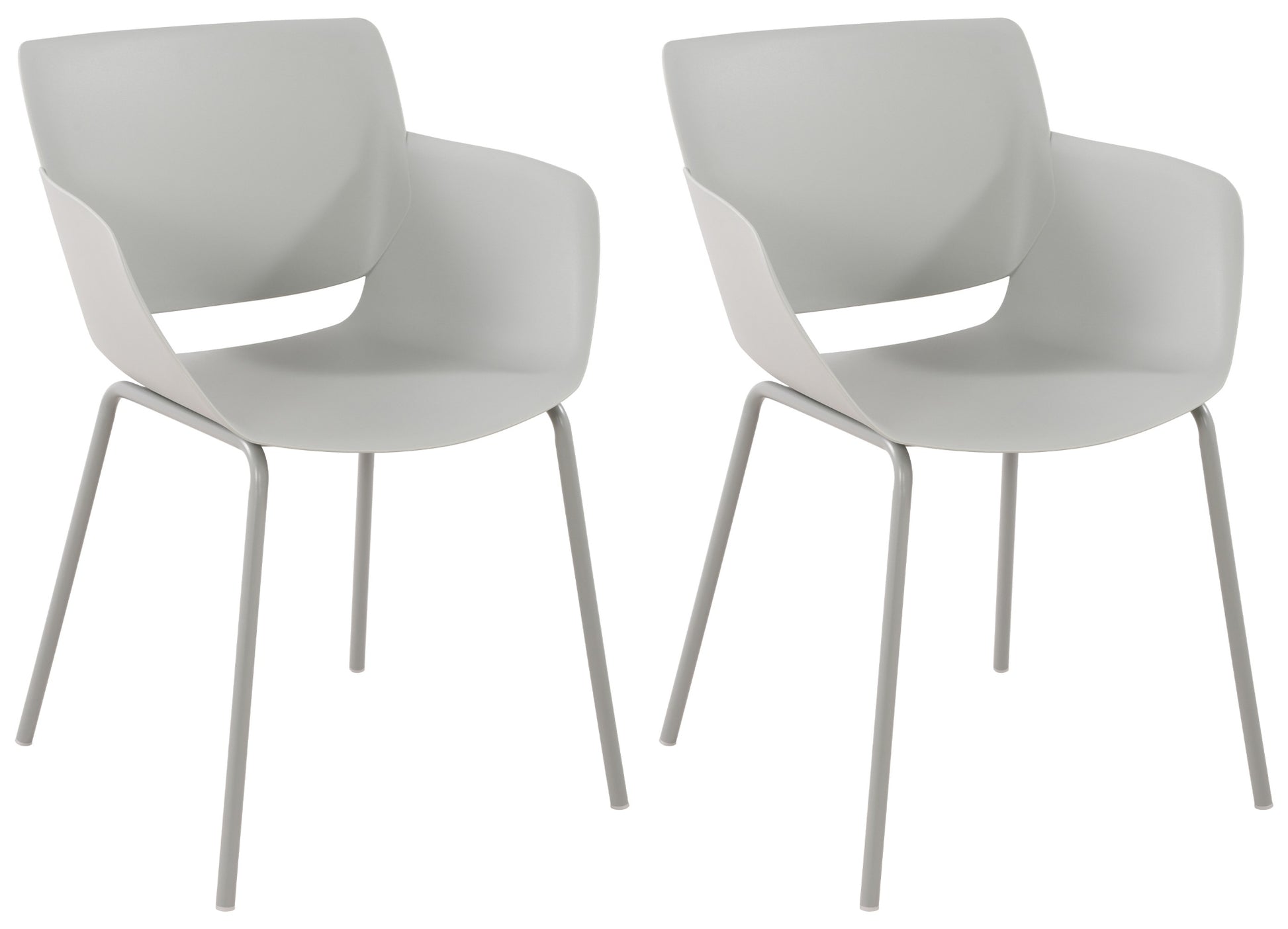 Das Stuhlgestell ist aus pulverbeschichtetem Stahl gefertigt, sodass es korrosionsbeständig ist und nicht rostet. Die Farben von Sitzschale und Stuhlgestellen sind aufeinander abgestimmt.