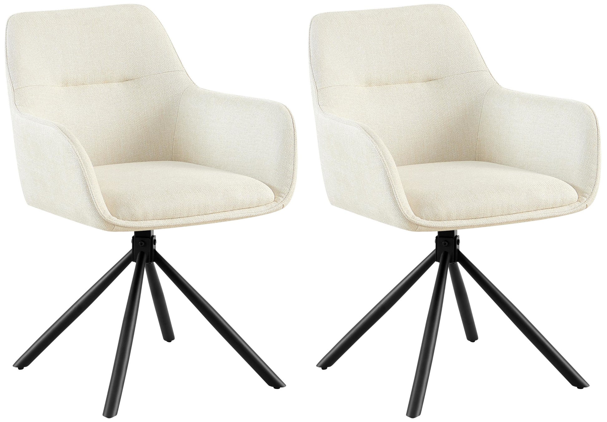 Der sogenannte Autoback-Drehmechanismus sorgt dafür, dass der Sitz des Esszimmerstuhls in einer Spanne von 180 Grad schwenkbar ist, was zusätzliche Bewegungsfreiheit bringt. Entscheidend für einen bequemen Sitz ist die angenehme Polsterung über Sitz, Rückenlehne und Armlehnen. Dabei ist die Sitzschale mit einem pflegeleichten und robusten Stoffbezug versehen.