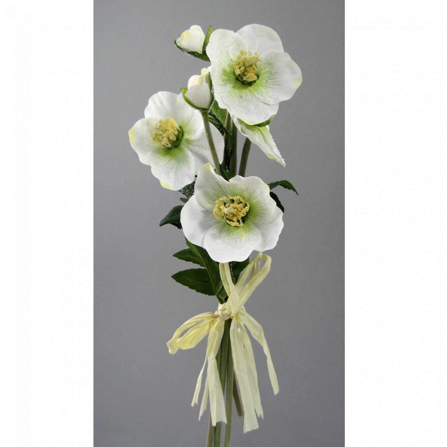 4er Set künstliches Christrosenarrangement mit Eis 35 cm weiß