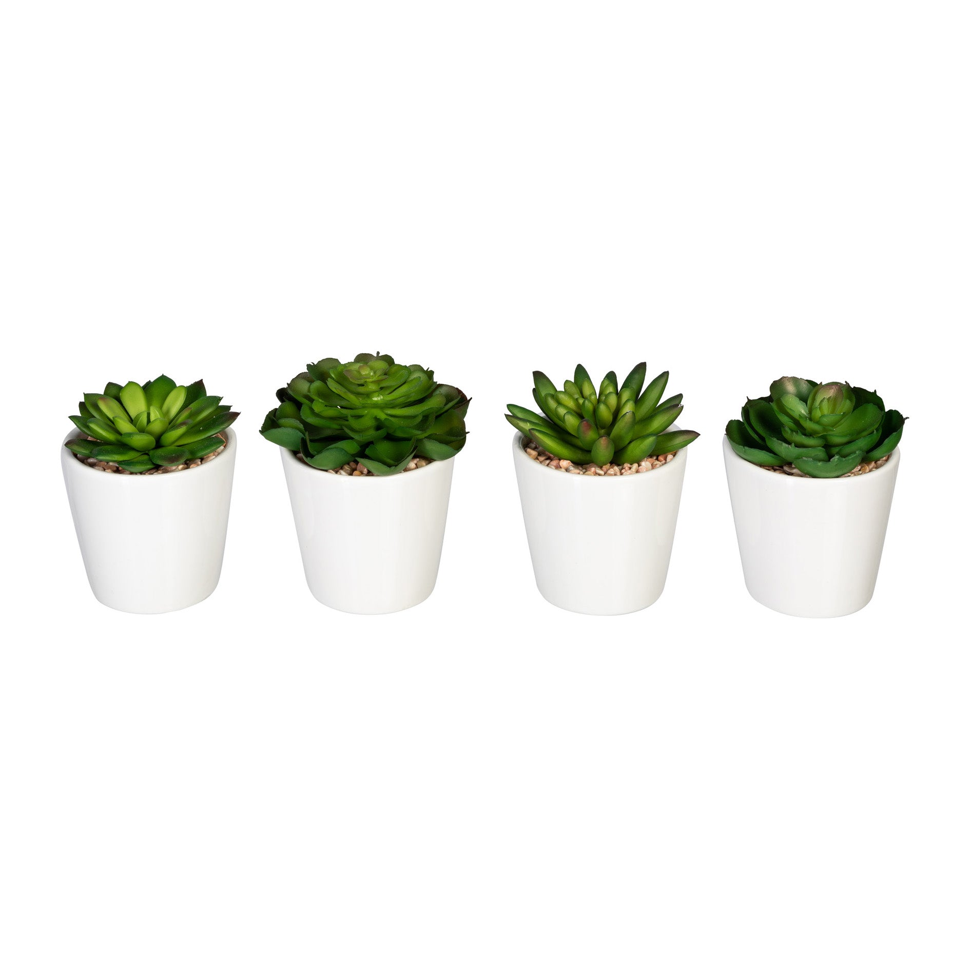 4er Set künstliche Echeverien im eleganten weißen Keramiktopf – Pflegeleichte Deko