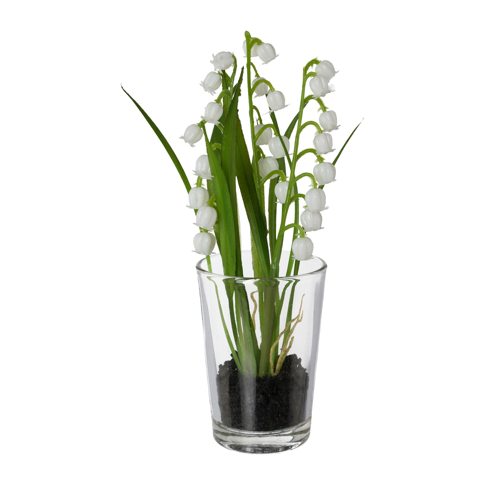 4er Frühlingsblüher Set Schneeglöckchen und Maiglöckchen im Glas 16 cm weiß