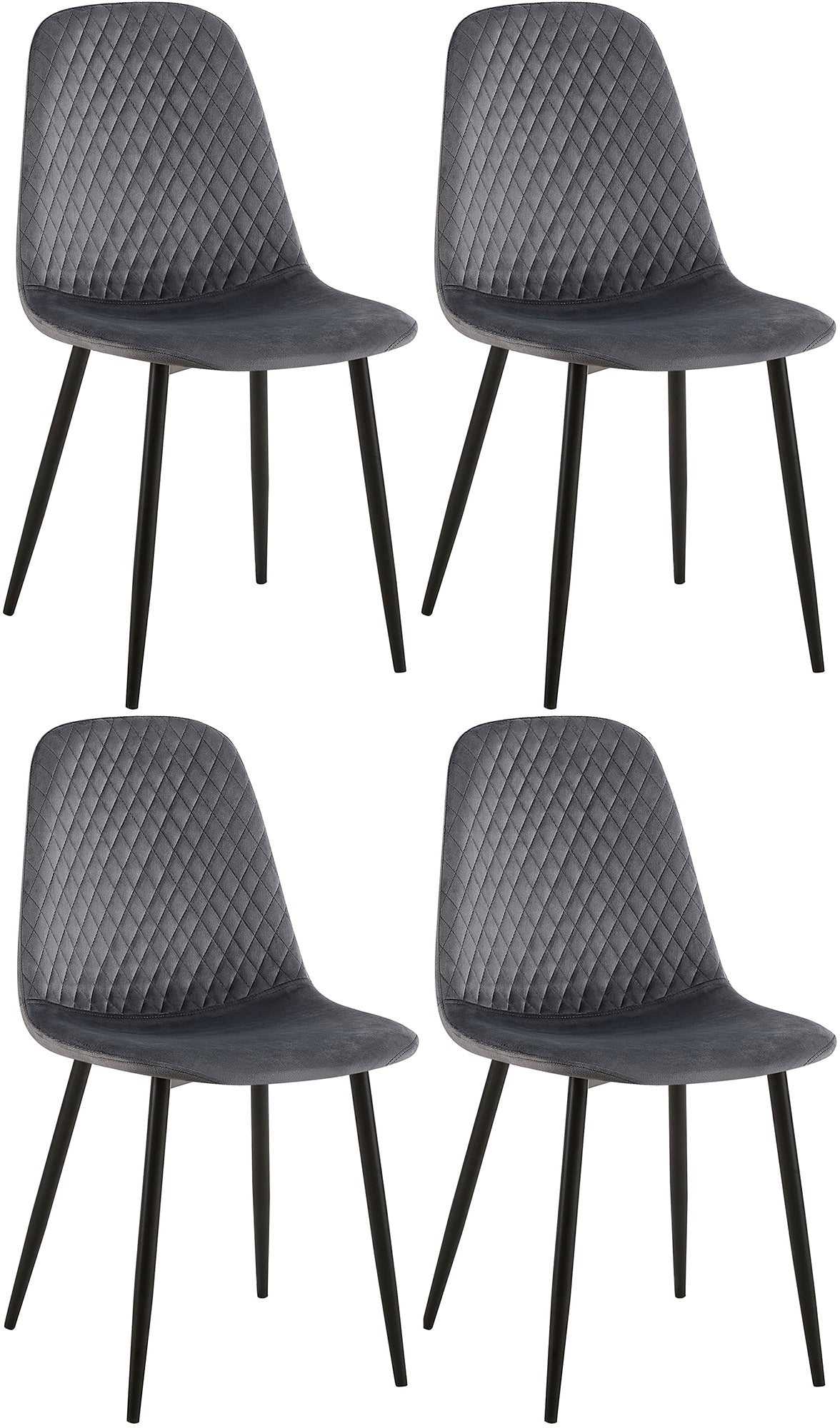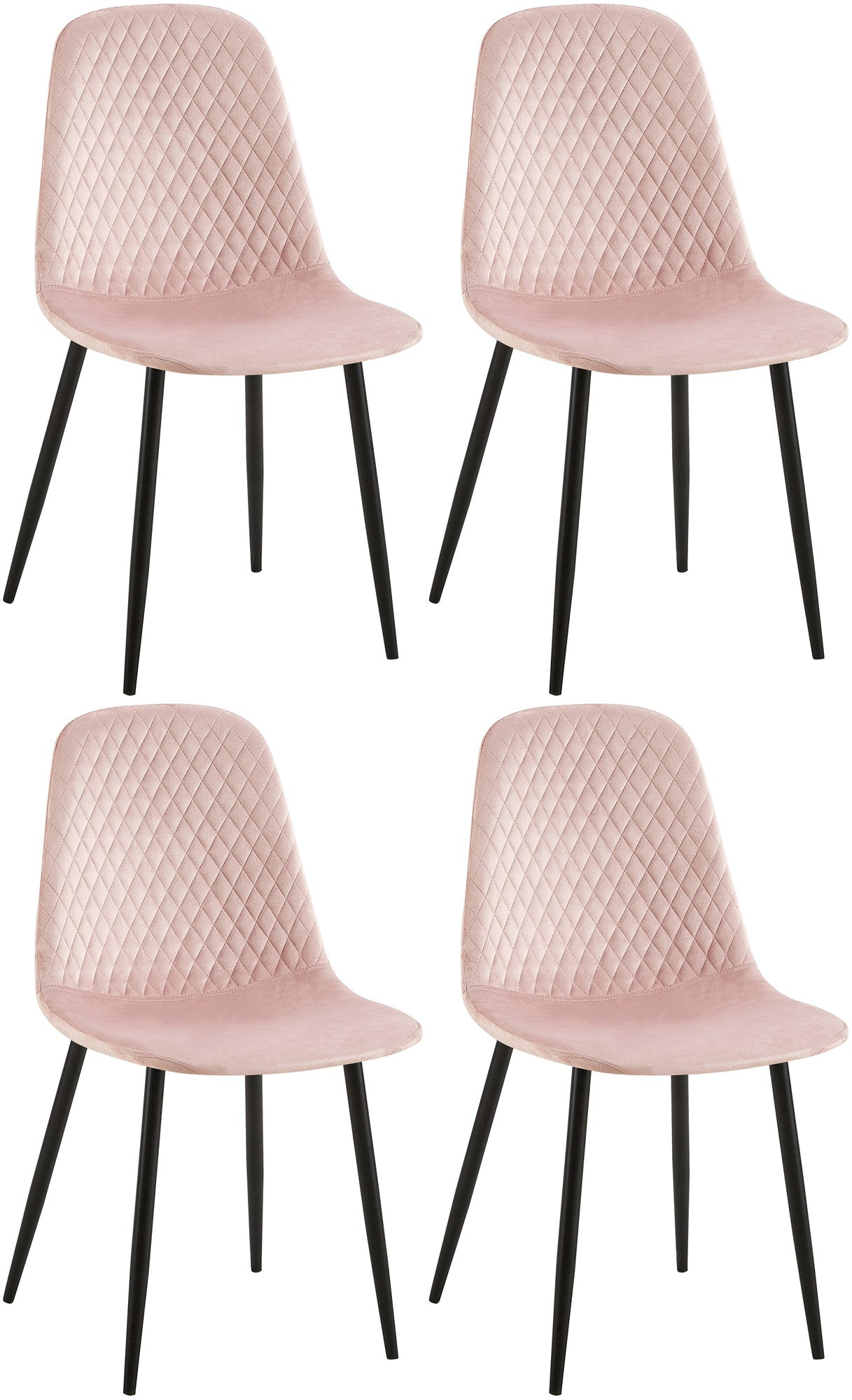Die robusten schwarzen Metallgestelle sorgen bei jedem Stuhl für Stabilität und eine hohe Belastbarkeit von bis zu 150 kg. Integrierte Bodenschoner schützen empfindliche Untergründe wie Parkett oder Fliesen vor Kratzern und ermöglichen gleichzeitig ein müheloses Verschieben. Mit einer angenehmen Sitzhöhe von 47 cm bieten die Stühle besten Komfort auch bei langen Abendessen mit Familie oder Freunden.