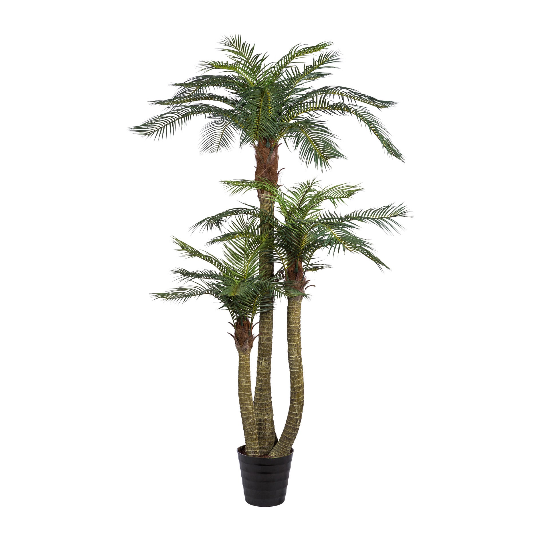 Arecapalme Kunstpflanze 250 cm mit 33 Wedeln und grünen Kunststofftopf 32x23 cm