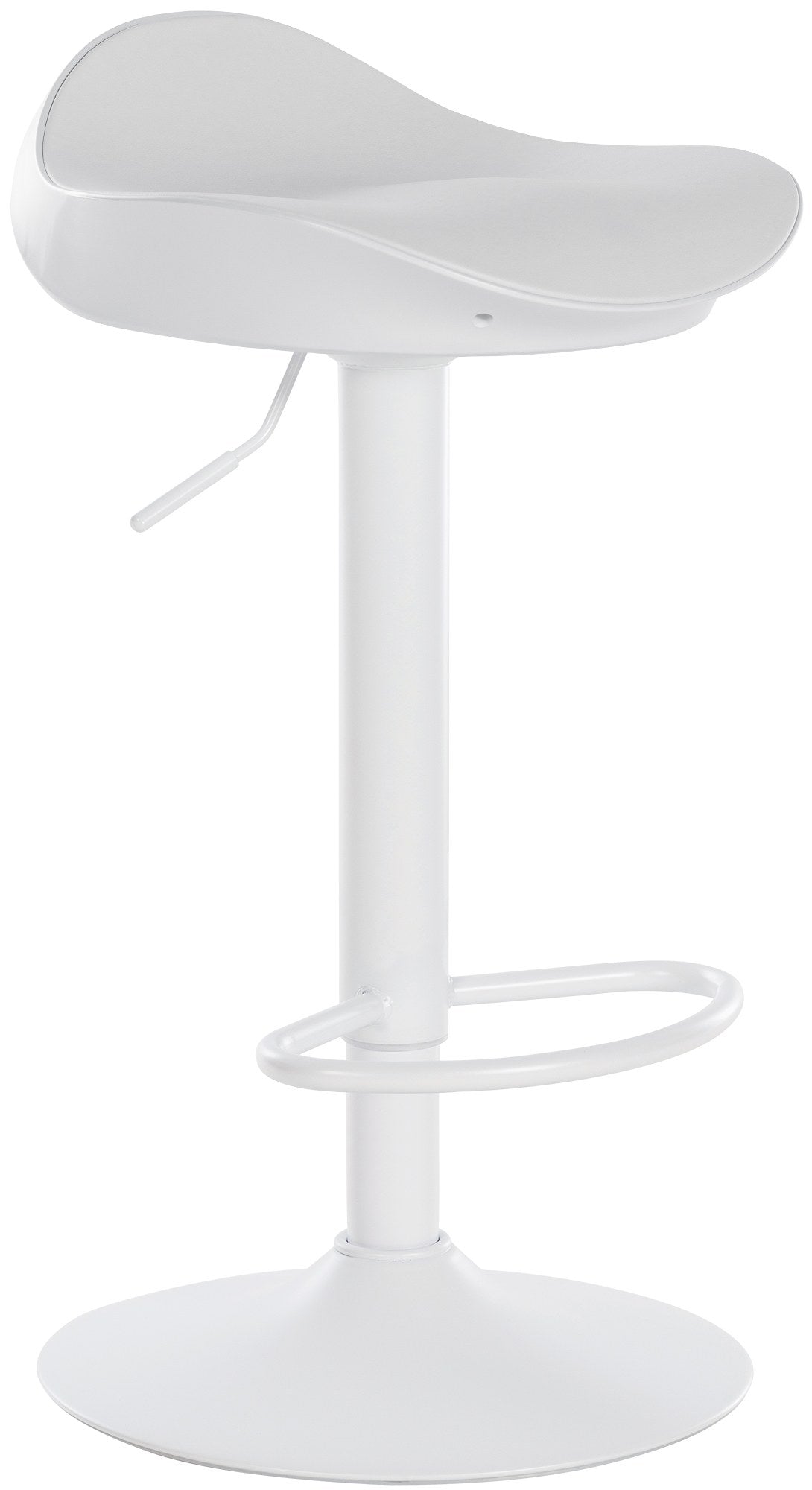 Der Barhocker Alisson besticht durch seine moderne und die ergonomische Form, welche sich perfekt an den Körper anschmiegt. Der Sitzbezug ist aus einem angenehm weichen und strukturierten Kunstleder. Dieses Modell ist durch seinen Gaslift stufenlos höhenverstellbar und bietet dadurch eine universell einsetzbare und für alle Thekenhöhen geeignete Lösung. Die Füße lassen sich angenehm auf der integrierten Fußstütze abstellen. Die Sitzfläche ist um 360° drehbar und ermöglicht ein bequemes Sitzen auch über Stunden hinweg. Dank der Kunststoffoberfläche ist dieser Tresenhocker leicht zu reinigen. Der Trompetenfuß aus Metall verleiht dem Barstuhl ein elegantes Aussehen. Um Beschädigungen am Boden zu verhindern, ist unter dem Fuß ein Gummiring angebracht. Neben Weiß und Schwarz ist der Kunstleder-Bezug auch in einer naturfarbenen Optik erhältlich.