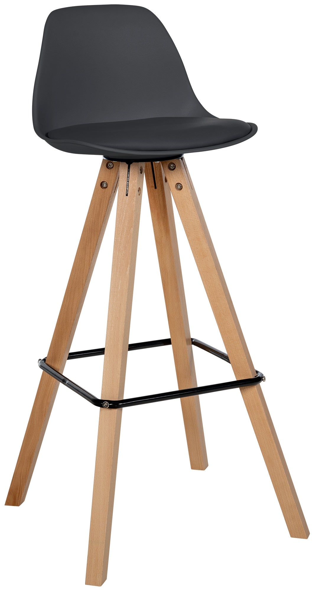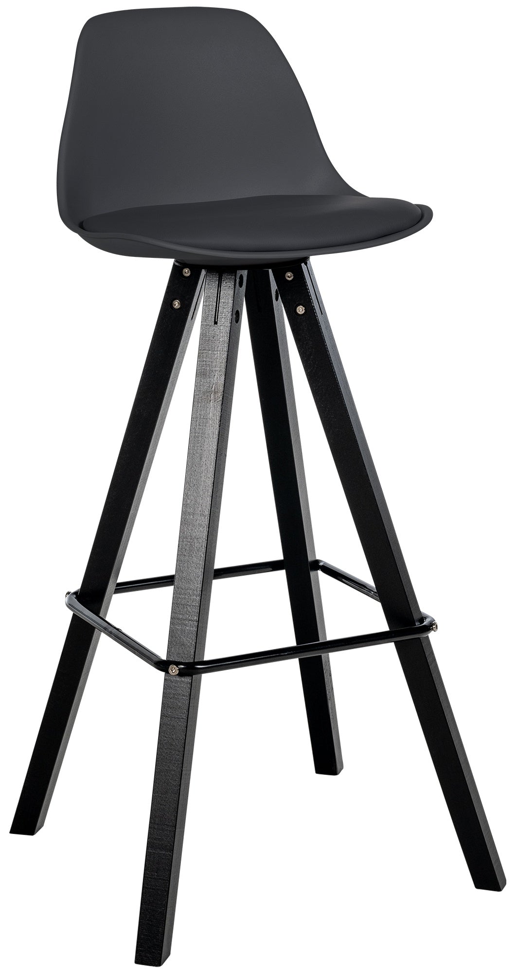 Das Gestell besteht aus Buchenholz, das aufgrund seiner Stabilität prädestiniert für den Möbelbau ist. Stabilisiert werden die Hockerbeine von den namensgebenden eckigen Querstreben aus Metall, auf denen die Füße zur Entspannung abgelegt werden können. Damit empfindliche Böden nicht verkratzt werden, besitzen die vier Stuhlbeine jeweils Bodenschoner aus Kunststoff.