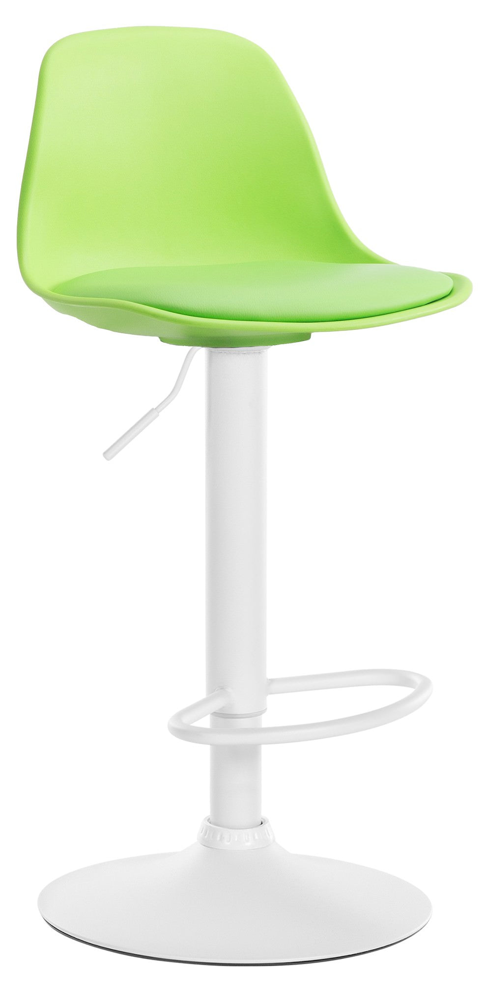 Dieser Barhocker sieht durch seinen Materialmix aus Kunststoff, Kunstleder und Metallgestell einfach nur stylisch aus. Die Sitzschale ist aus stabilem Kunststoff hergestellt. Dank der angenehmen und komfortablen Polsterung mit Kunstlederbezug ist ein bequemes Sitzen auch über einen längeren Zeitraum kein Problem. Zudem ist dieser Küchenhocker höhenverstellbar und passt sich somit ideal an jede Körpergröße an. Der Trompetenfuß aus Metall ist mit einer stilvollen Fußstütze versehen, die das Sitzen noch bequemer gestaltet. Das Gestell ist zusätzlich mit einem Bodenschoner versehen, dieser verhindert Kratzer und Beschädigungen des Bodens.