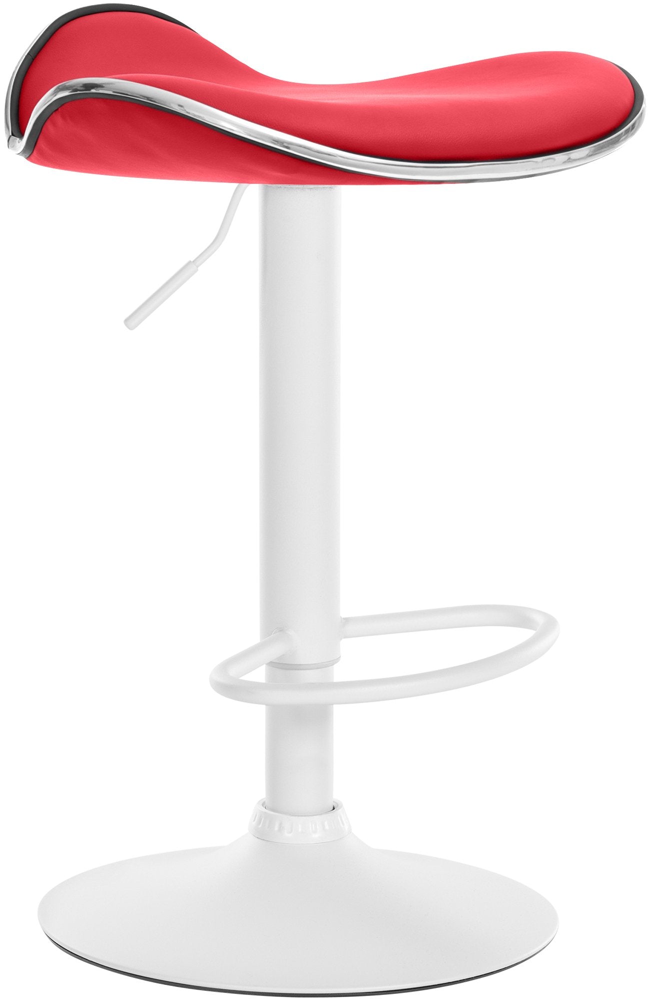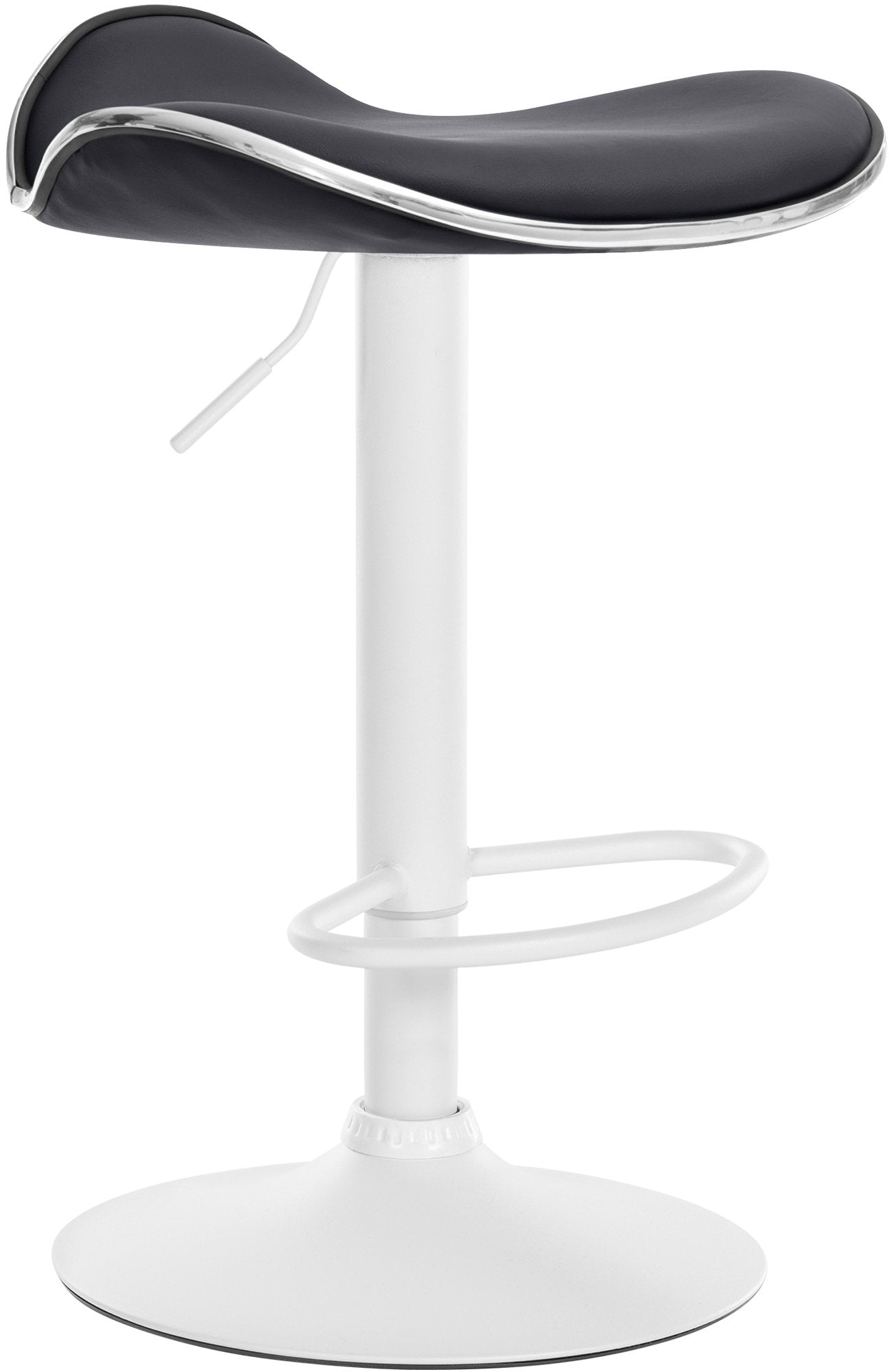 Der Hocker-Sitz ist mit hochwertigem Kunstleder bezogen, bietet eine bequeme Polsterung und die Wölbung der Sitzschale unterstützt den Steißbeinbereich. Das robuste Metallgestell ist stabil und standfest und dank der 360-Grad-Drehbarkeit äußerst flexibel. Die stufenlose Höhenverstellbarkeit ermöglicht individuelle Anpassungen, während die integrierte Fußstütze zusätzlichen Komfort bietet.