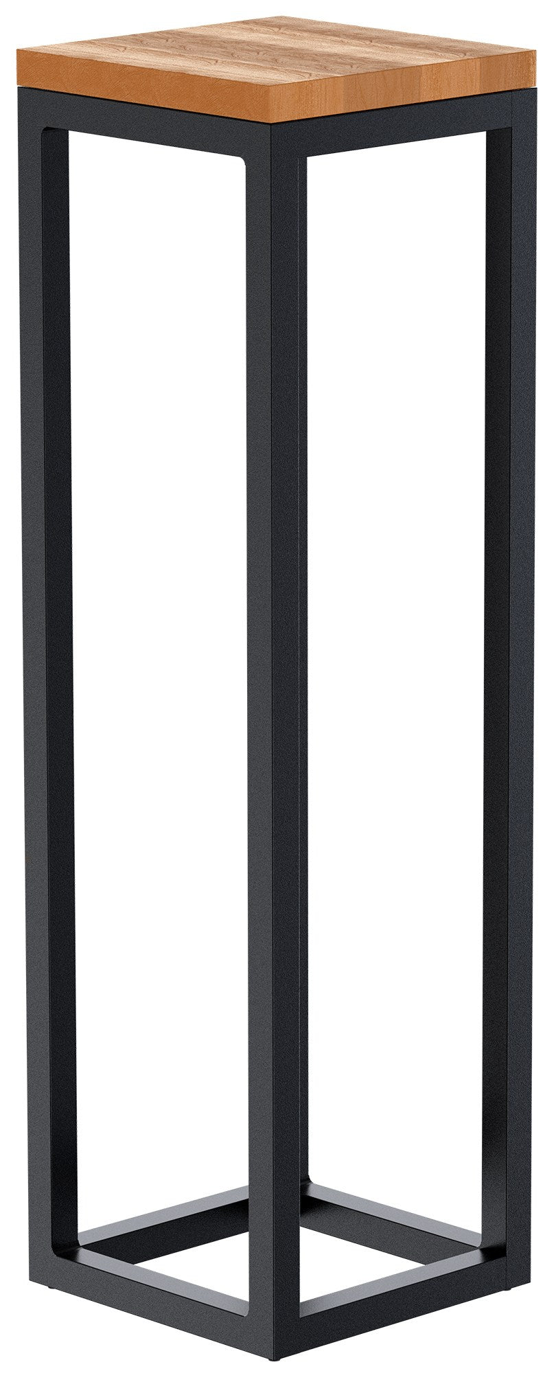 Die Tischplatte aus massivem Eichenholz verleiht dem Tisch eine natürliche, warme Ausstrahlung, während das robuste, matt-schwarze, pulverbeschichtete Metallgestell für Stabilität und einen modernen Look sorgt. Bodenschoner schützen empfindliche Böden vor Kratzern.
