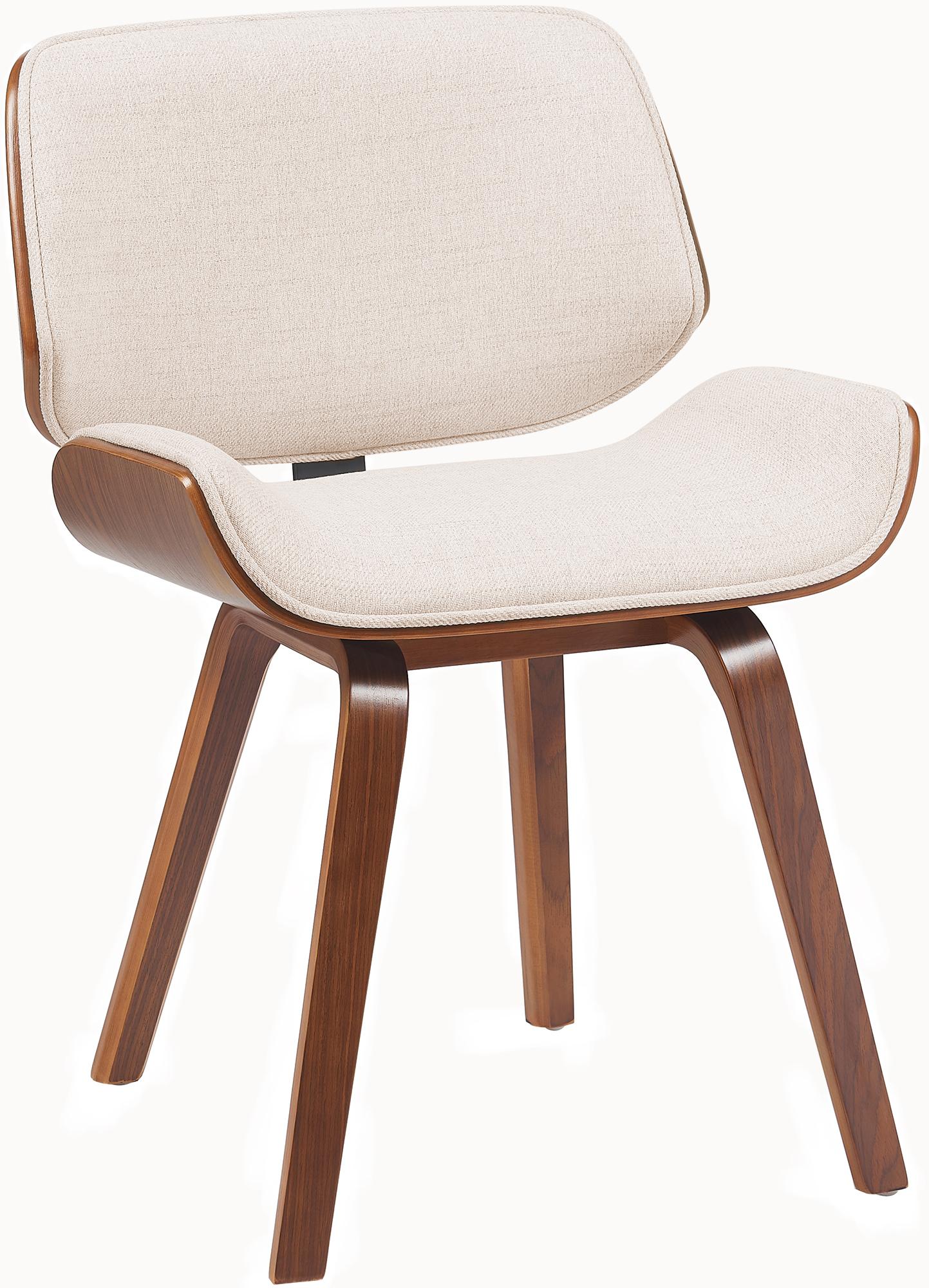 Das Gestell aus robustem Bugholz in eleganter Walnussoptik verleiht dem Stuhl einen hochwertigen Look und fügt sich harmonisch in verschiedene Wohnstile ein. Bodenschoner an den Stuhlbeinen schützen empfindliche Böden und ermöglichen ein leises Verschieben.