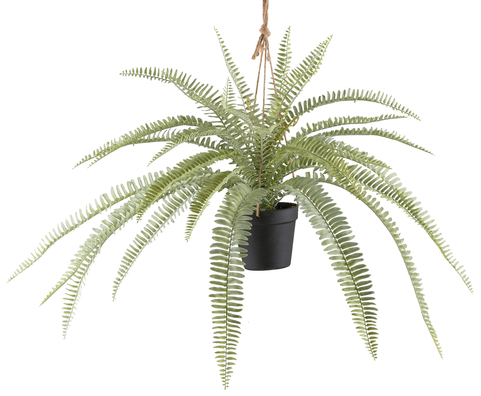 Boston Farn – 80 cm Ø, 45 cm, Kunststoff, Hellgrün im Kunststoffhängetopf (12 x 11 cm), Kunstpflanze