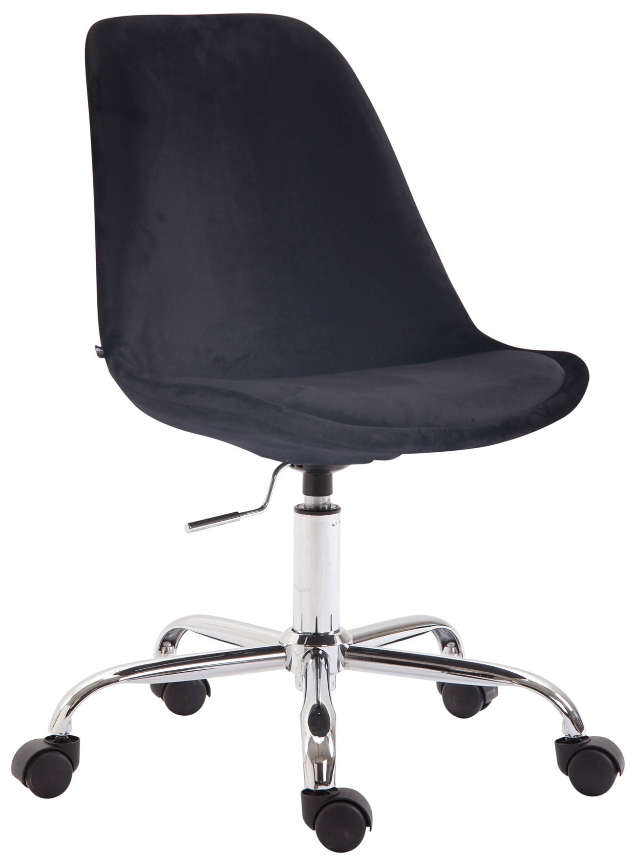 Dieser Bürostuhl sieht durch seinen Materialmix aus Samt und Metall in Chromoptik einfach nur stylisch aus und überzeugt mit Funktionalität. Durch sein praktisches Design ist er auch für kleinere Räume geeignet. Der gepolsterte Sitz ist mit einem Samtbezug überzogen und dank einer stufenlos verstellbaren Sitzhöhe ist das ergonomische Sitzen möglich. Dabei steht er standsicher auf fünf Leichtlaufrollen und einem Gestell aus Metall in Chromoptik. Egal ob Hart- oder Teppichböden man kann leicht und locker über den Boden rollen.