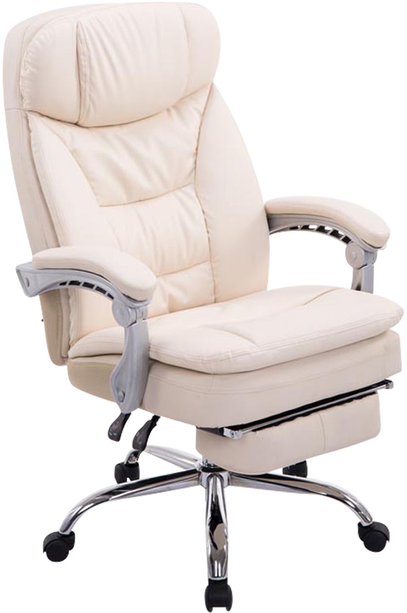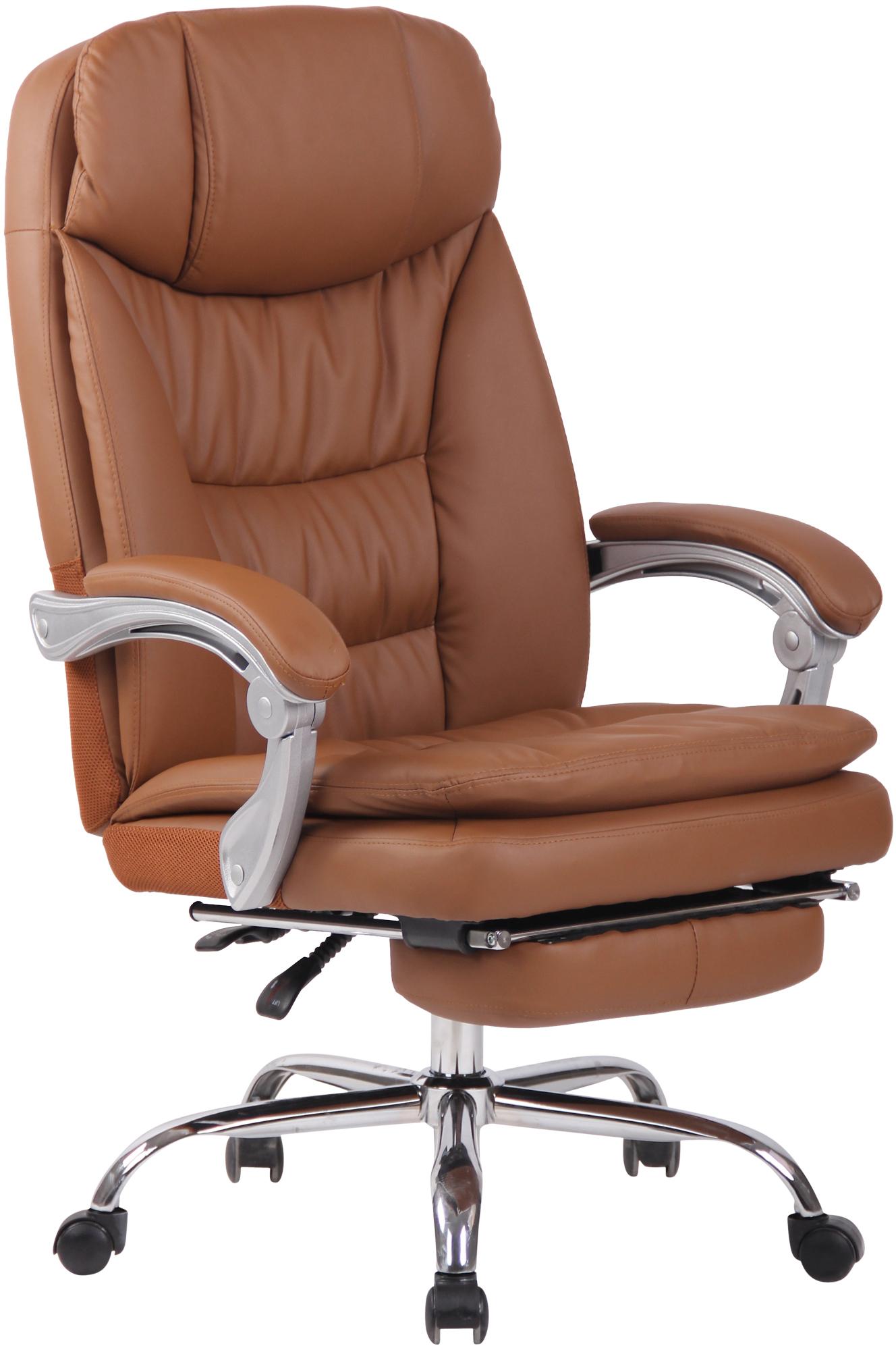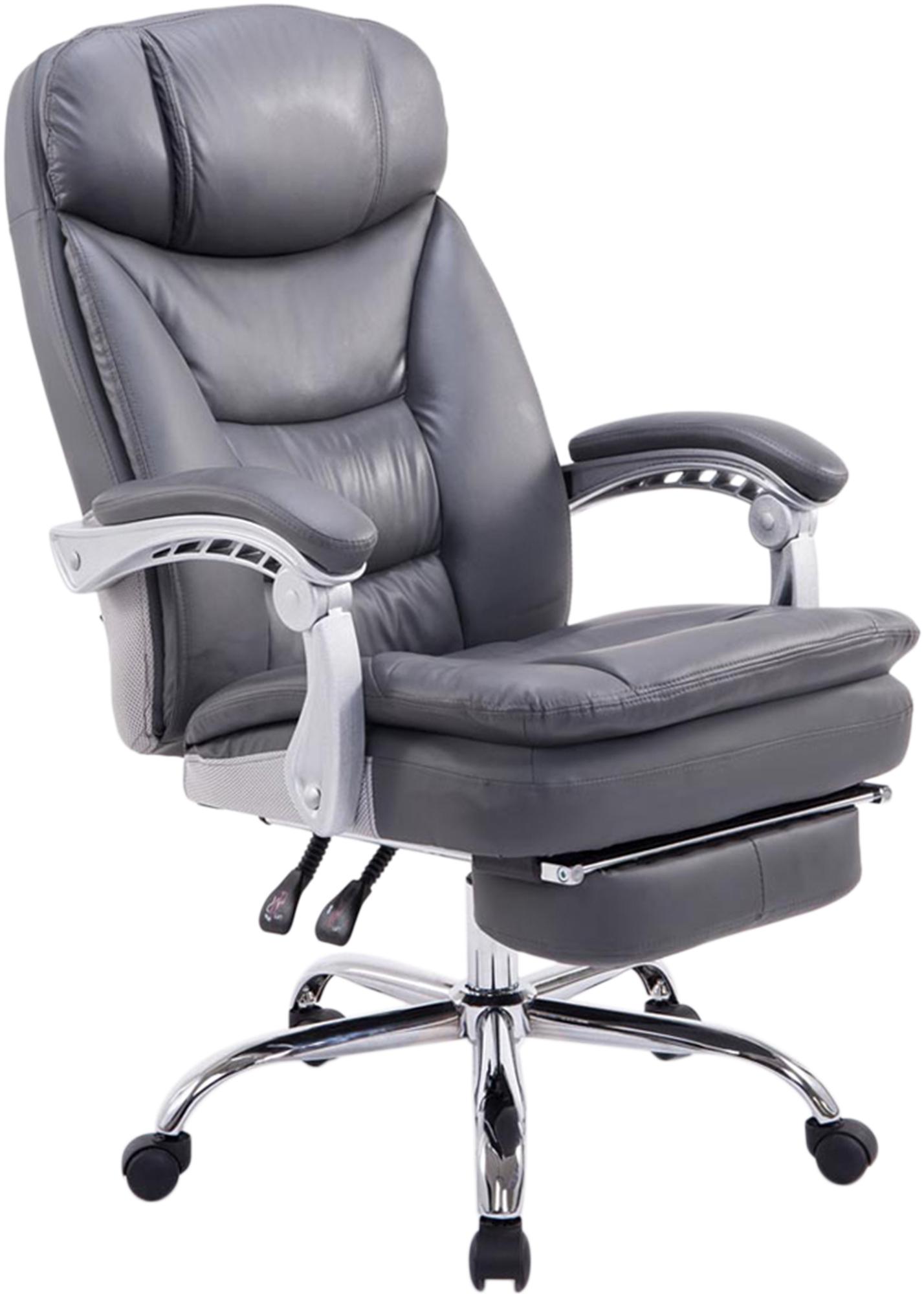 Der XL-Bürostuhl Troy ist gemütlich und robust. Seine hochwertige Polsterung sowie der pflegeleichte Kunstlederbezug bieten ein komfortables Sitzgefühl, das auch bei längeren Sitzzeiten erhalten bleibt. Die Möglichkeit, die Fußstütze und die Rückenlehne leicht zu verstellen, trägt zu einem entspannten Nutzererlebnis bei und angenehmen Pausen, in denen man sich zurücklehnen und die Beine hochlegen kann.