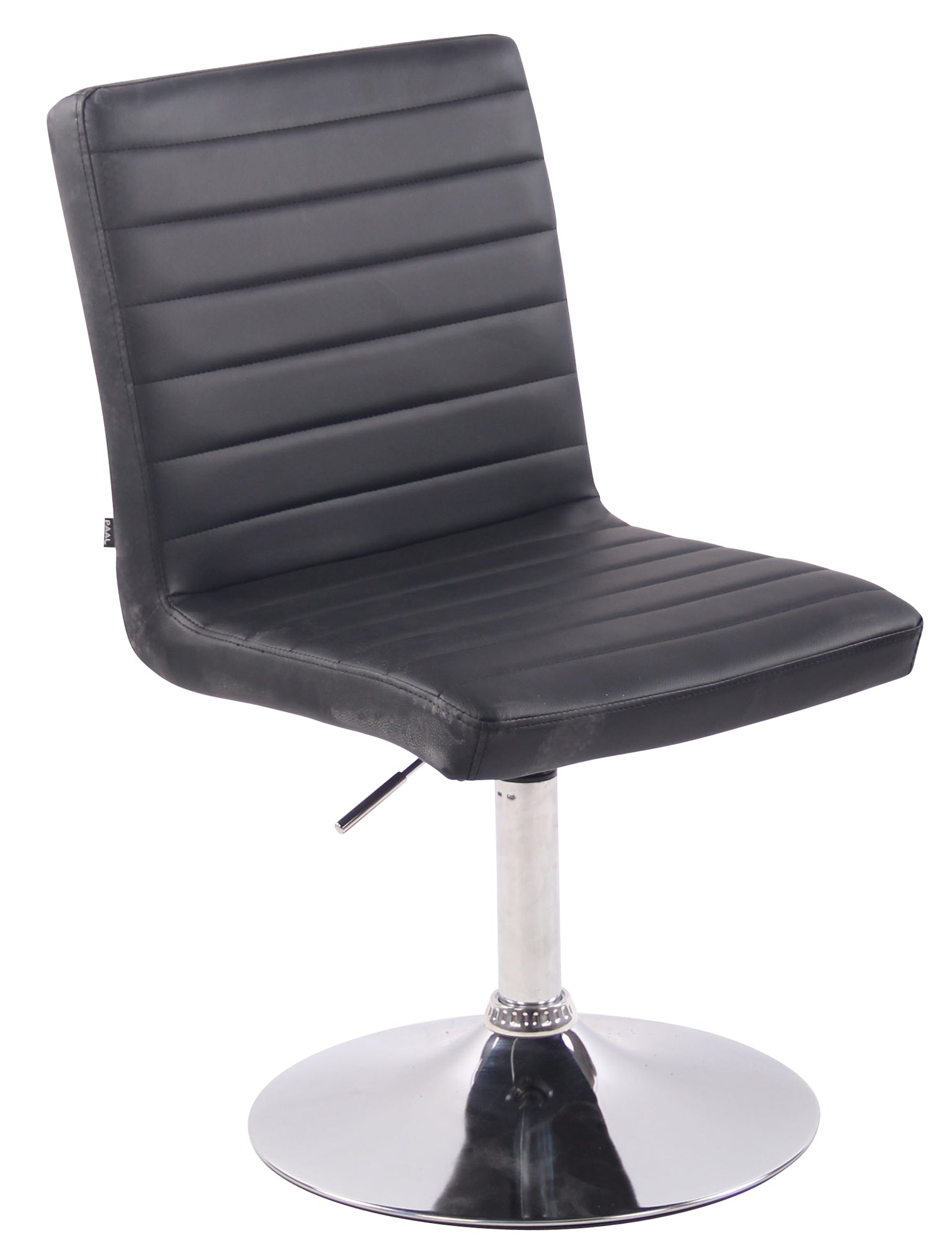 Der Esszimmerstuhl Elvas Kunstleder ist eine bequeme und zugleich stilvolle Sitzgelegenheit für den täglichen Gebrauch. Der Sitz ist mit einem pflegeleichten Kunstleder bezogen und überzeugt mit ansprechender Optik. Zudem ist die Sitzfläche mit Ziernähten versehen. Mit Hilfe des Metallhandgriffs lässt sich dieses Modell in der Wunschhöhe stufenlos einstellen. Das Gestell besteht aus Metall in Chromoptik und unter dem Trompetenfuß befinden sich Bodenschoner, die ein Verkratzen des Bodens verhindern. Dieser Polsterstuhl verleiht ein modernes Flair und ergänzt wunderbar jedes Wohnambiente.
