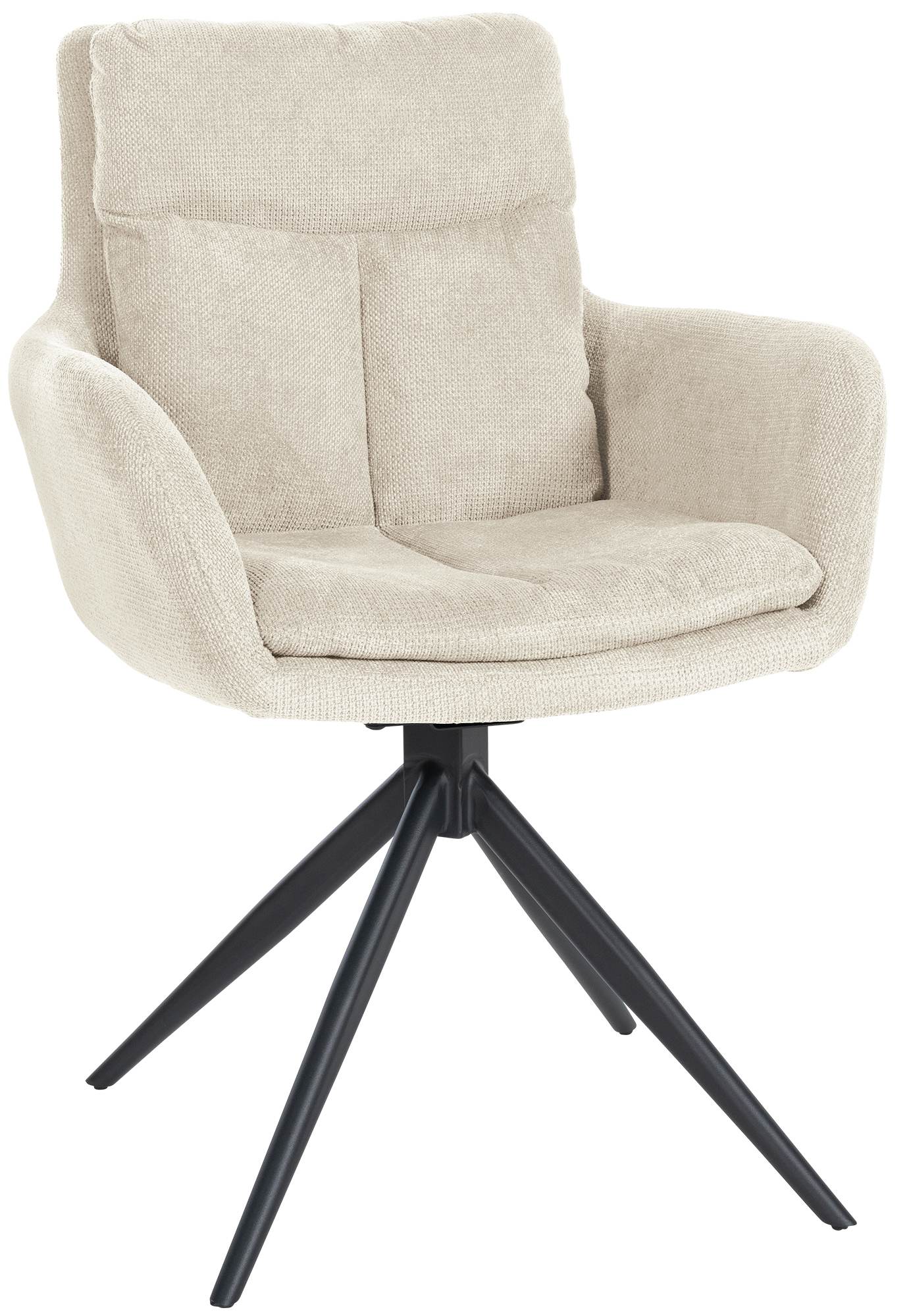Entscheidend für einen bequemen Sitz ist die angenehme Polsterung über Sitz, Rückenlehne und Armlehnen. Dabei ist die Sitzschale mit einem pflegeleichten und robusten Stoff-Bezug versehen. Die sogenannte Swivel-Funktion sorgt dafür, dass der Sitz in einer Spanne von 180 Grad schwenkbar ist, was für zusätzliche Bewegungsfreiheit sorgt.