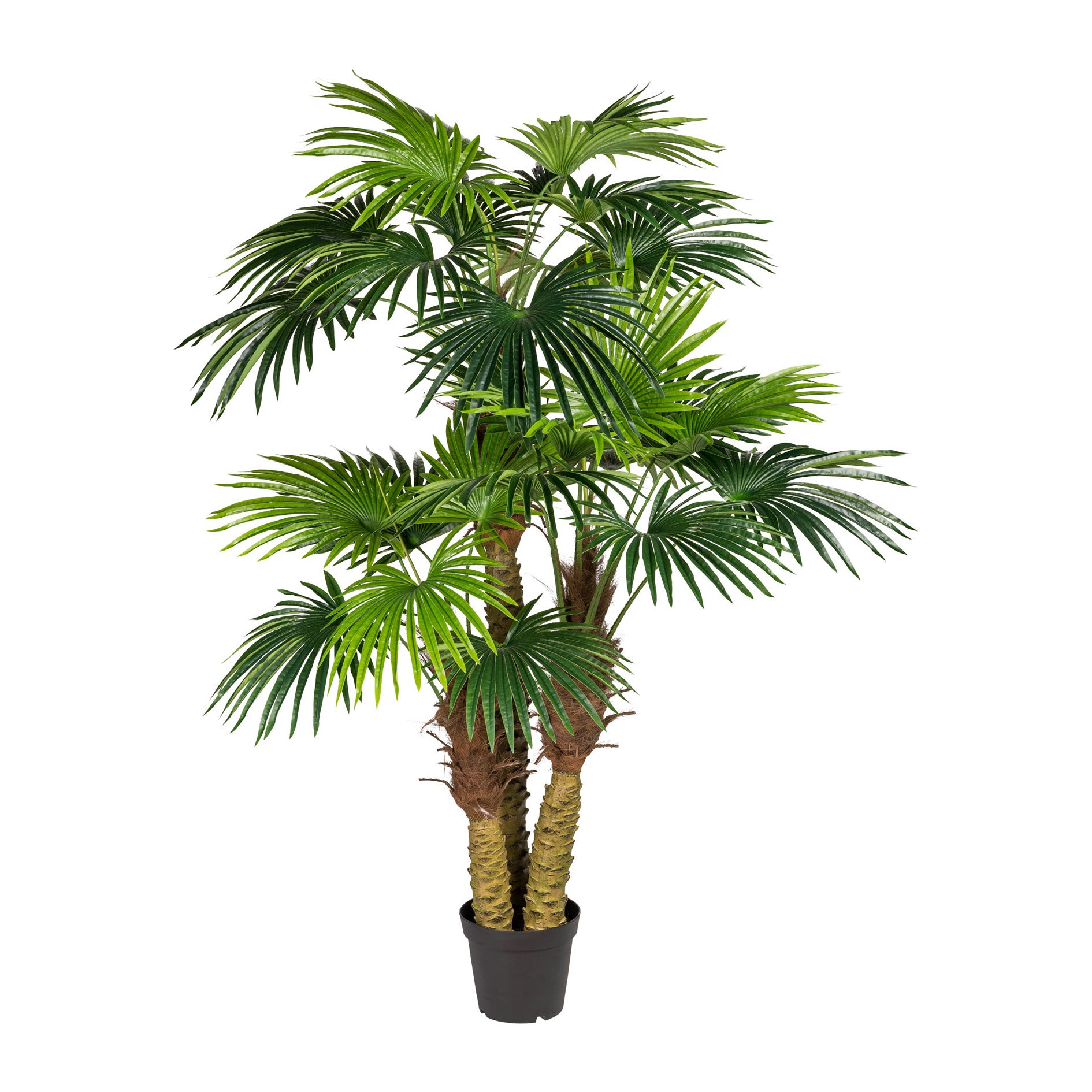 Fächerpalme 185 cm – pflegeleichte Kunstpflanze mit 26 Wedeln im schwarzen Topf 24x20 cm