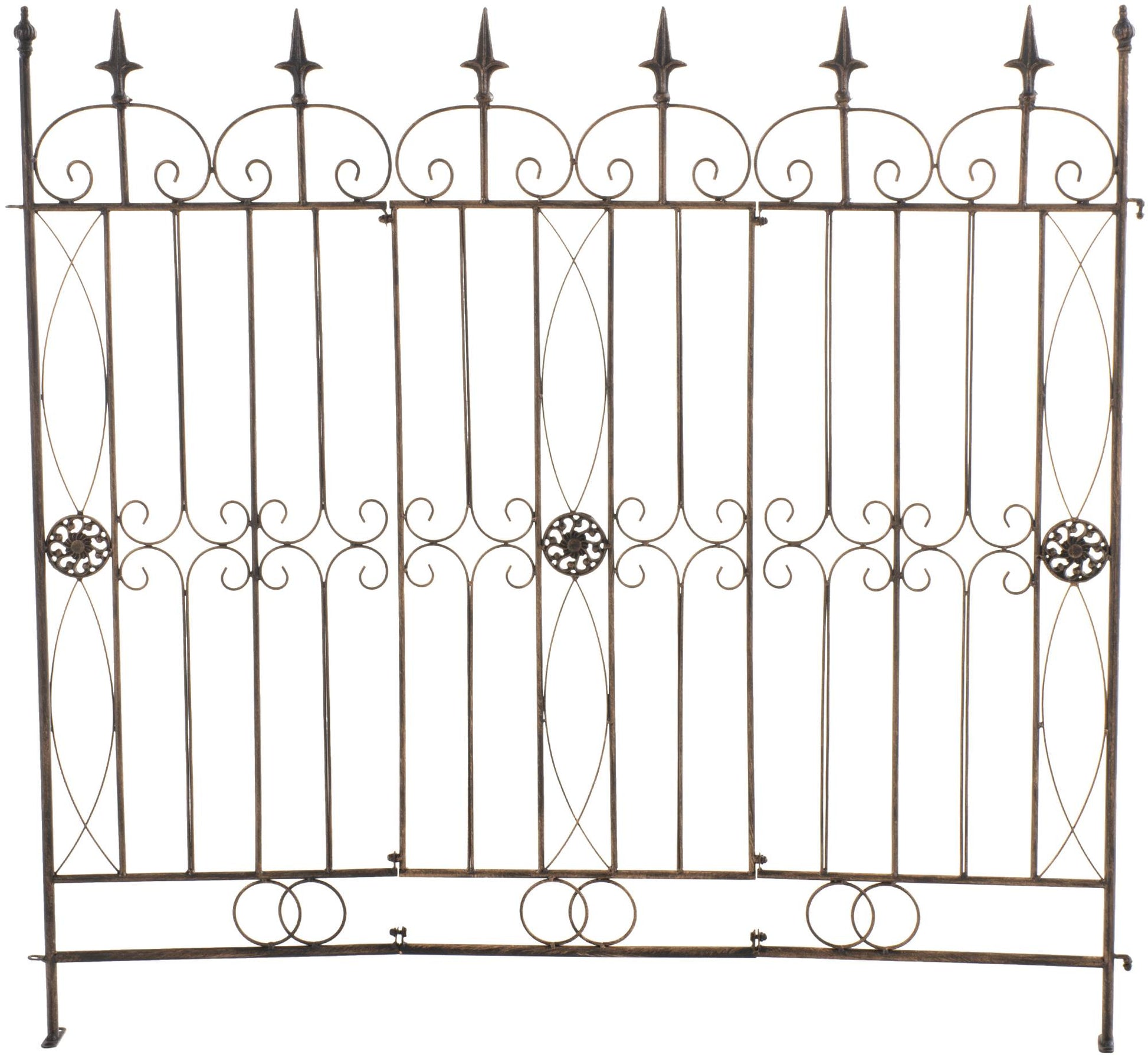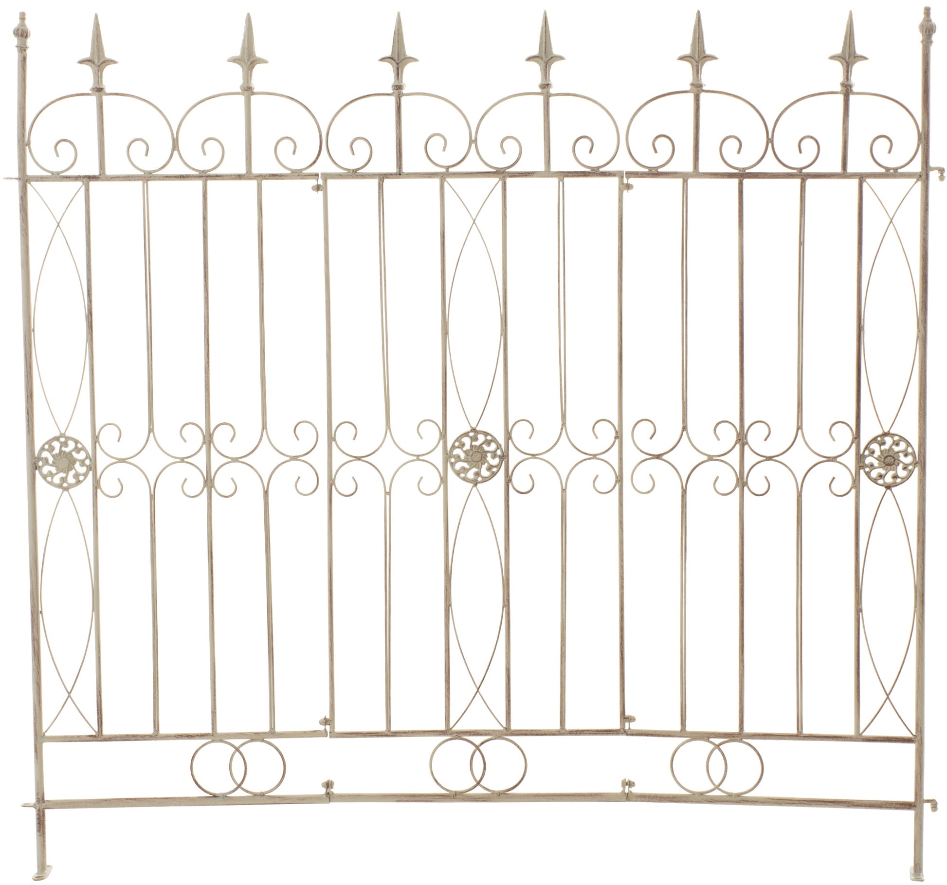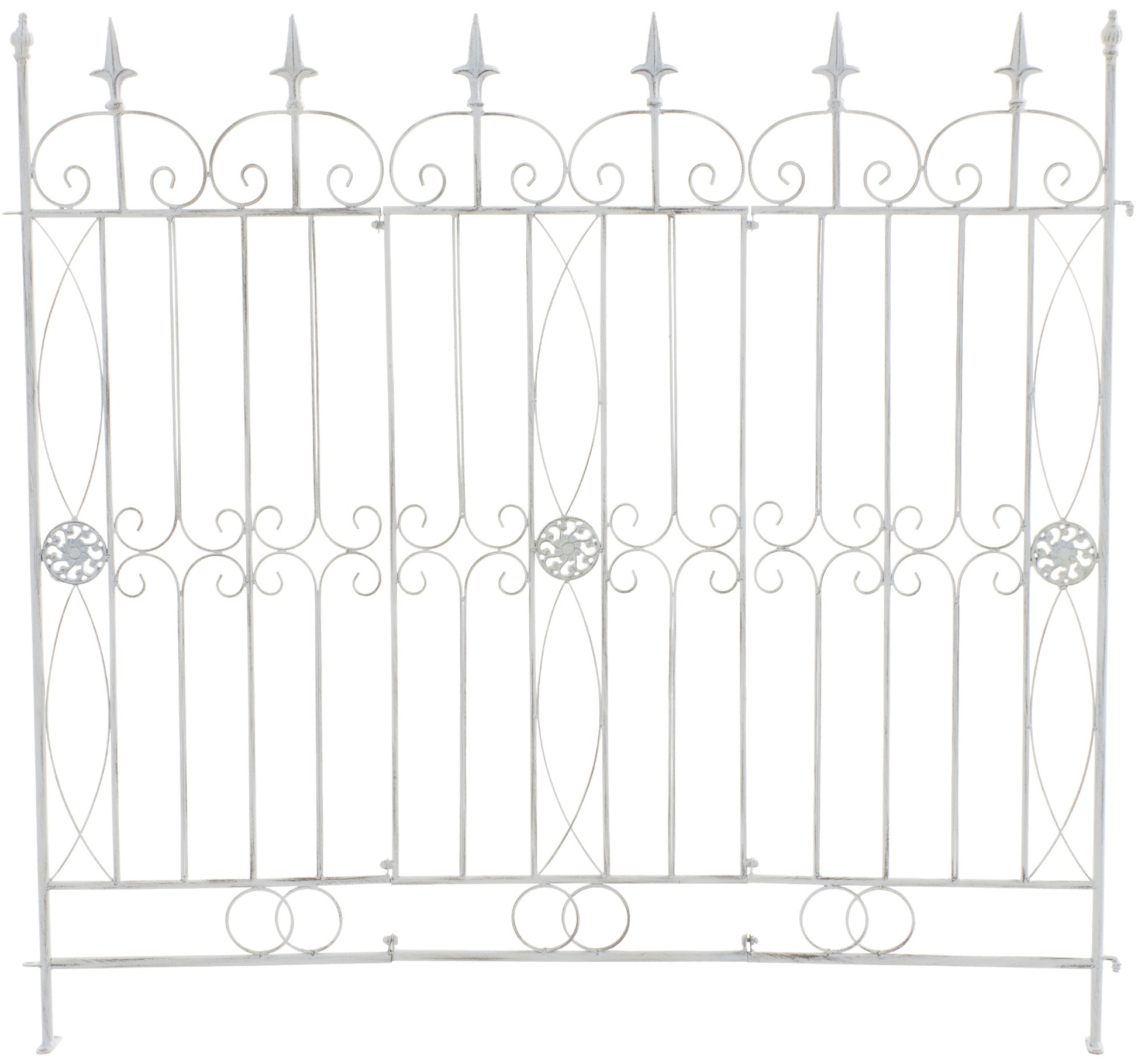 Jedes Zaunelement ist großzügige 124 cm breit und verfügt über liebevolle Verzierungen, die ihm einen einzigartigen Charme verleihen. Durch seine Konstruktion eignet sich der Zaun perfekt als Rankgitter, um Pflanzen wie Rosen, Kletterpflanzen und Weinreben dekorativ in Szene zu setzen.