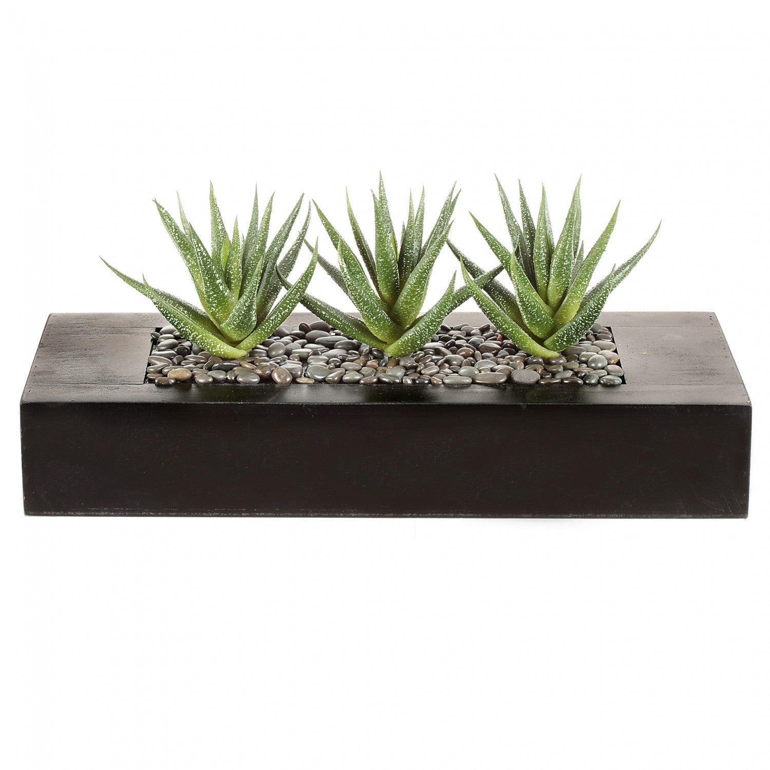 Holzkasten mit 3 Agavenpflanzen - Kunstpflanzen für hochwertige Raumdekoration, 36x15,5x6cm
