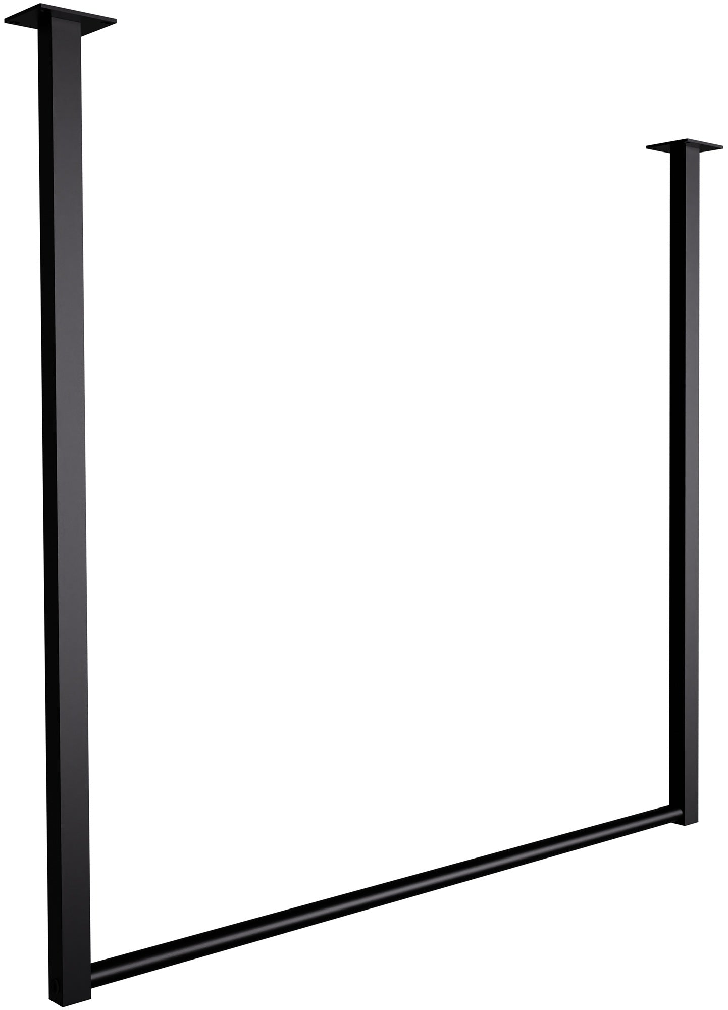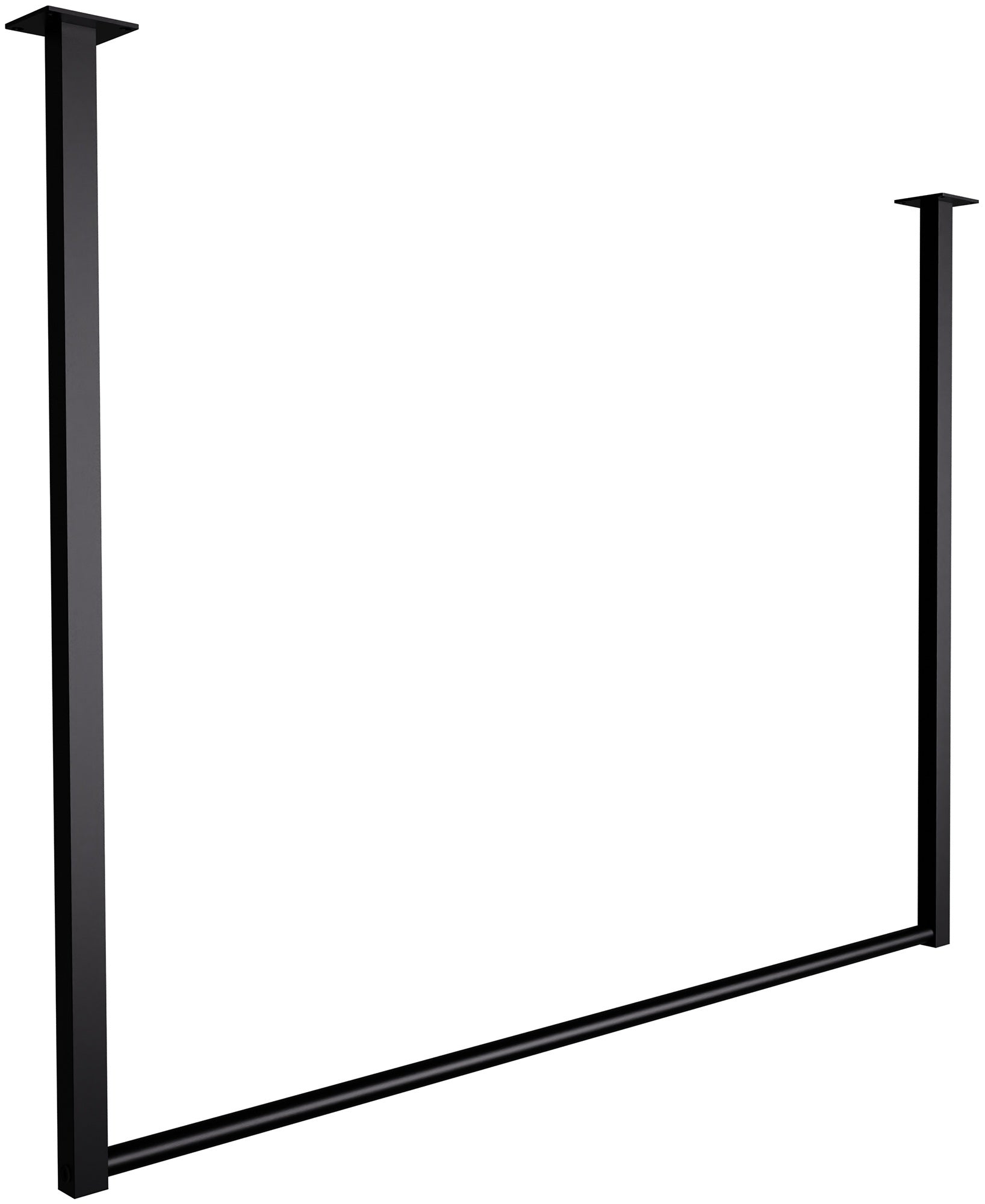 Besonders ist die Deckenmontage, welche auch viele Kombinationsmöglichkeiten bietet. So kann die Halterung bspw. mit einer Kommode, einem Sideboard oder einem Schuhregalen kombiniert werden. Mit ausreichend Platz für Jacken, Hemden und Blusen hält diese offene Kleiderstange die Kleidung knitterfrei und stets griffbereit.