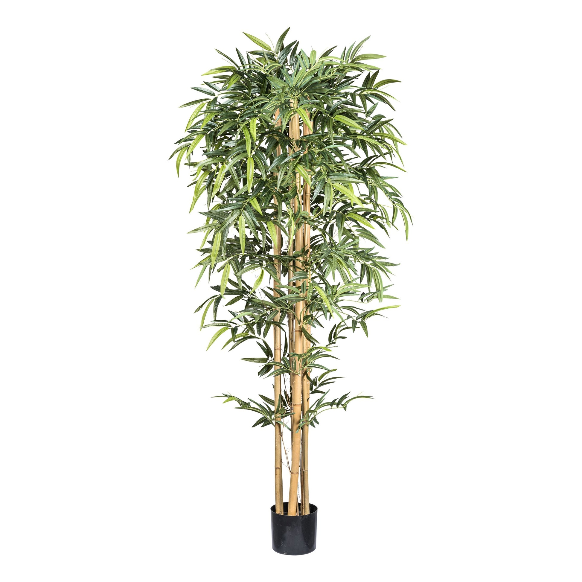 Bambus – Kunstpflanze, ca. 210 cm, 1536 Blätter, Naturstamm, im Kunststofftopf