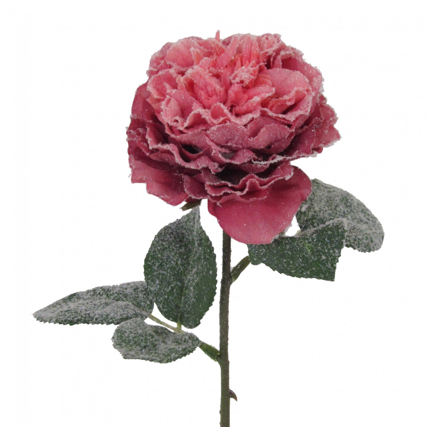 Künstliche altrosa Rose mit Kunstschnee 43 cm – Stilvolle Weihnachtsdeko für jedes Zuhause