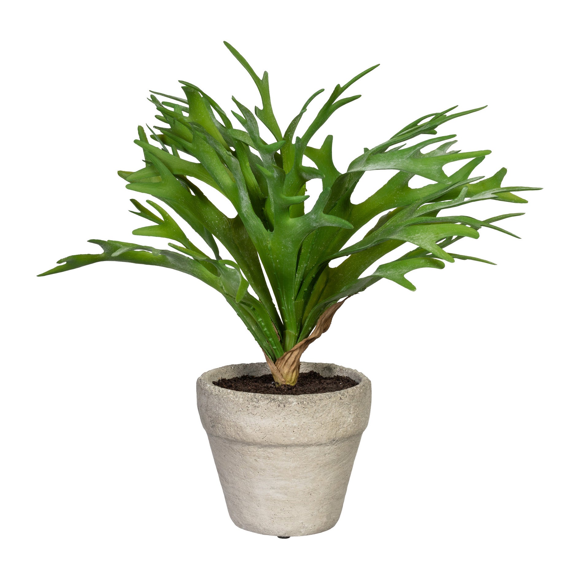 Künstlicher Geweihfarn 28 cm im grauen Zementtopf