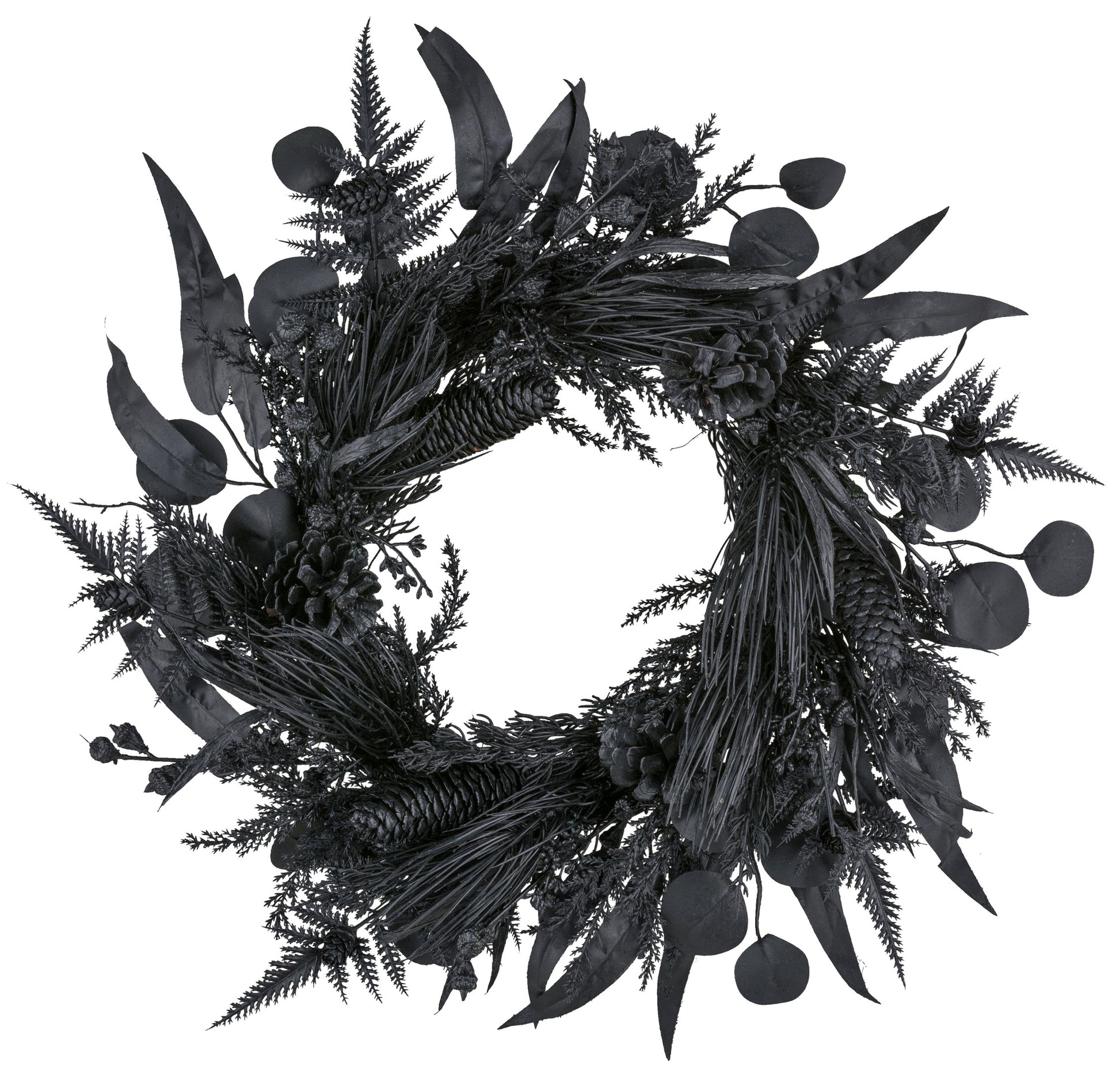 Künstlicher Mixkranz mit Zapfen schwarz 60cm