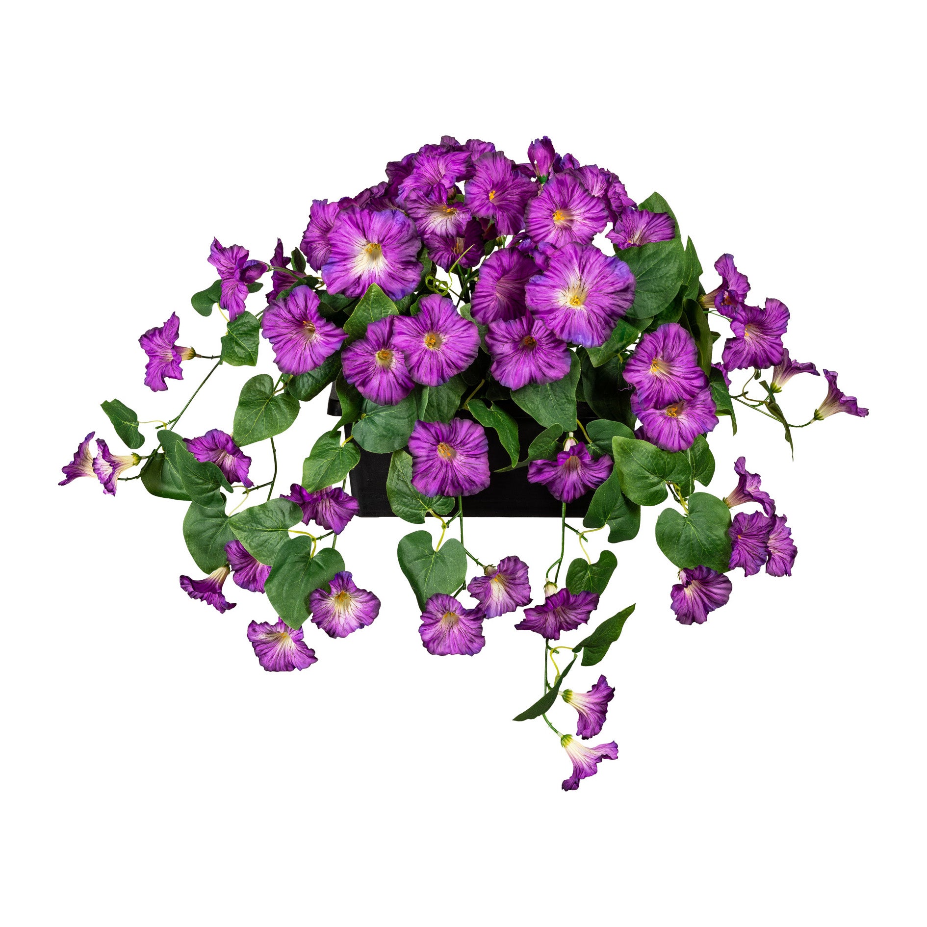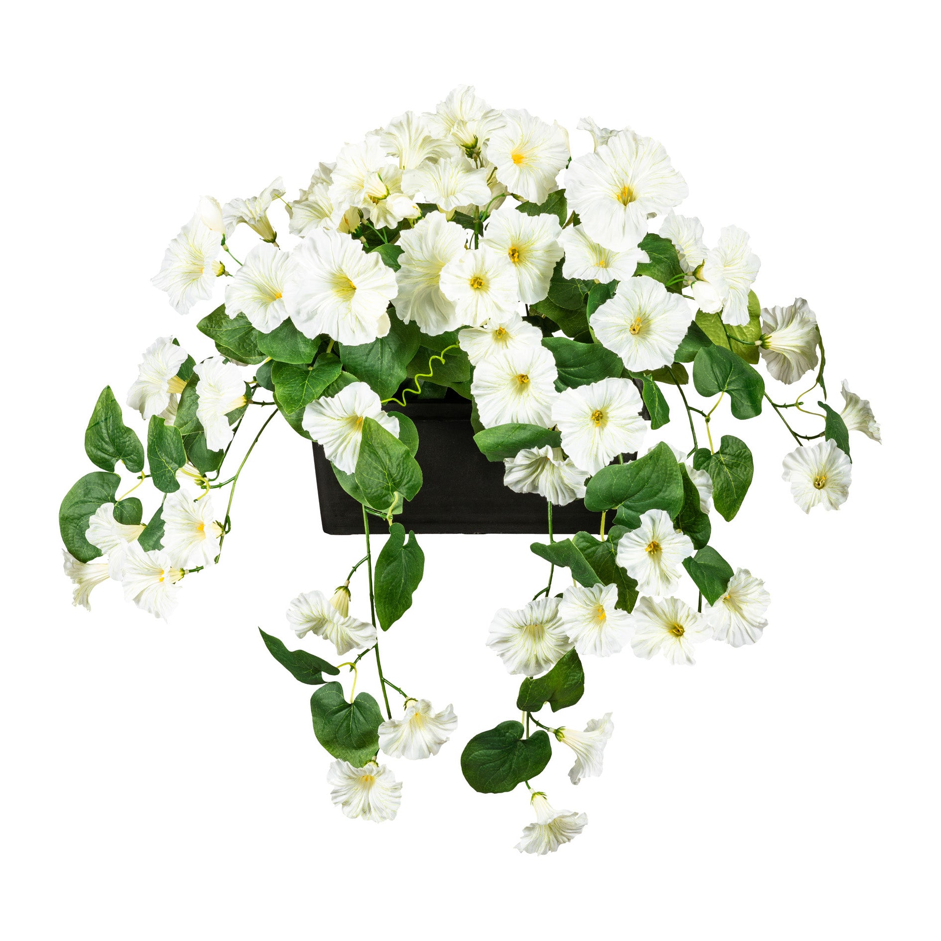 Dieser liebevoll der Natur nachempfundene Petunienhänger ist mit seinen detailgetreuen Blüten und dem üppigen Blattwerk ein echter Hingucker.