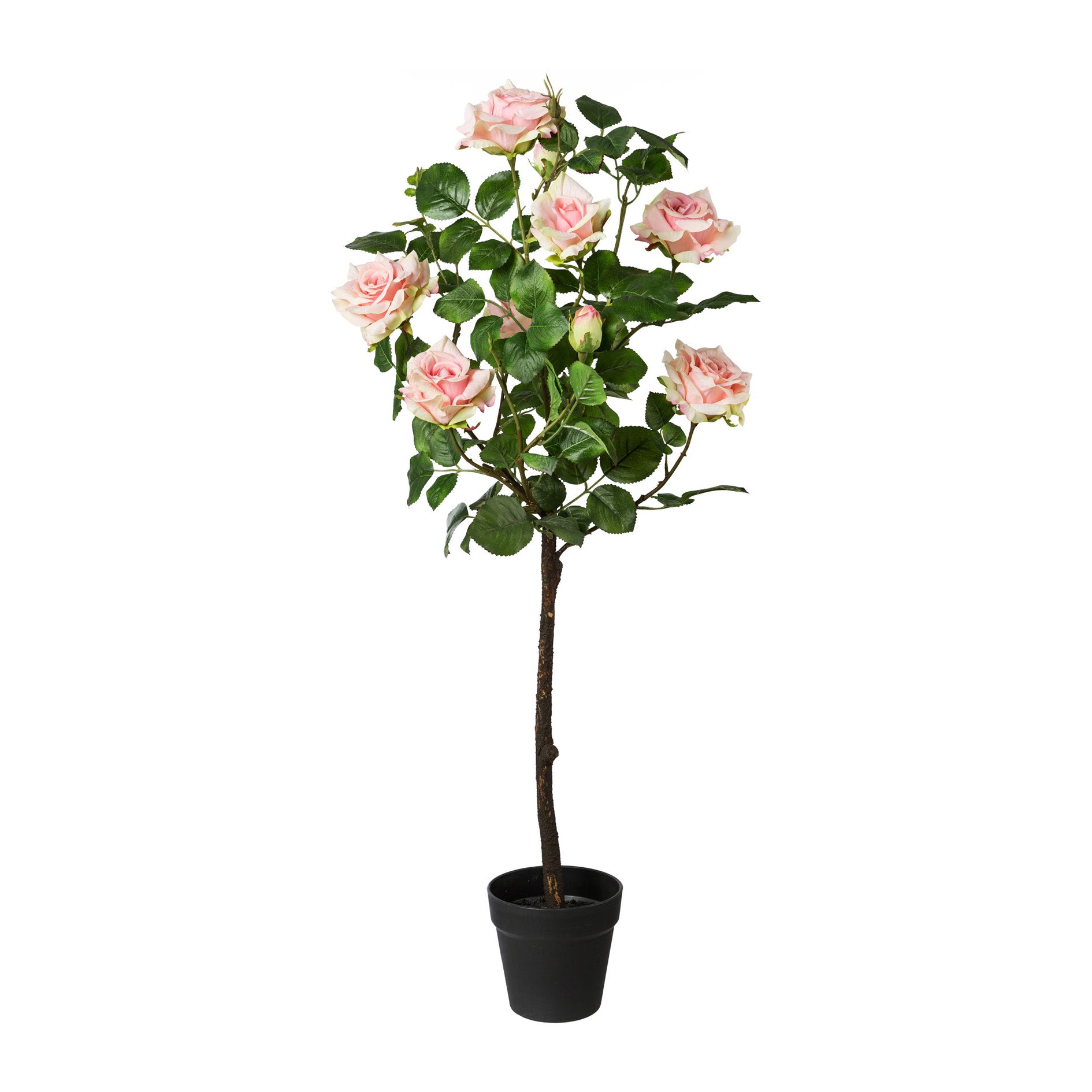 Künstlicher Rosenstamm 95 cm im Topf – Realistische Blüten in Creme und Rosa