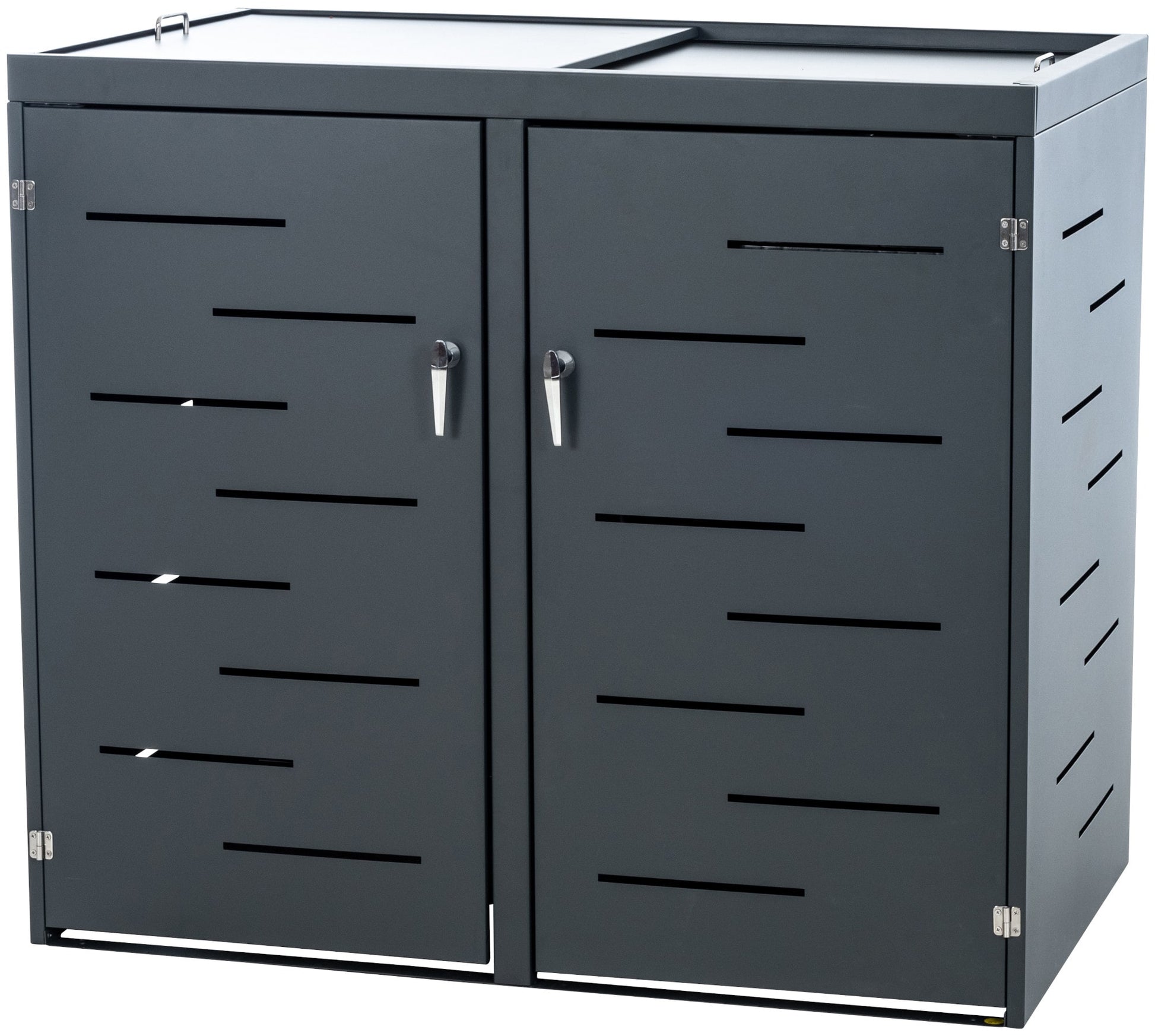 Die Müllverkleidung Tanis fungiert als Sichtschutz vor den wenig ansehnlichen Mülltonnen und schützt diese gleichzeitig vor Niederschlägen. Je nach Auswahl können 2-3 Mülltonnen mit bis zu 240 Liter Kapazität in dieser Mülltonnenbox verstaut werden.