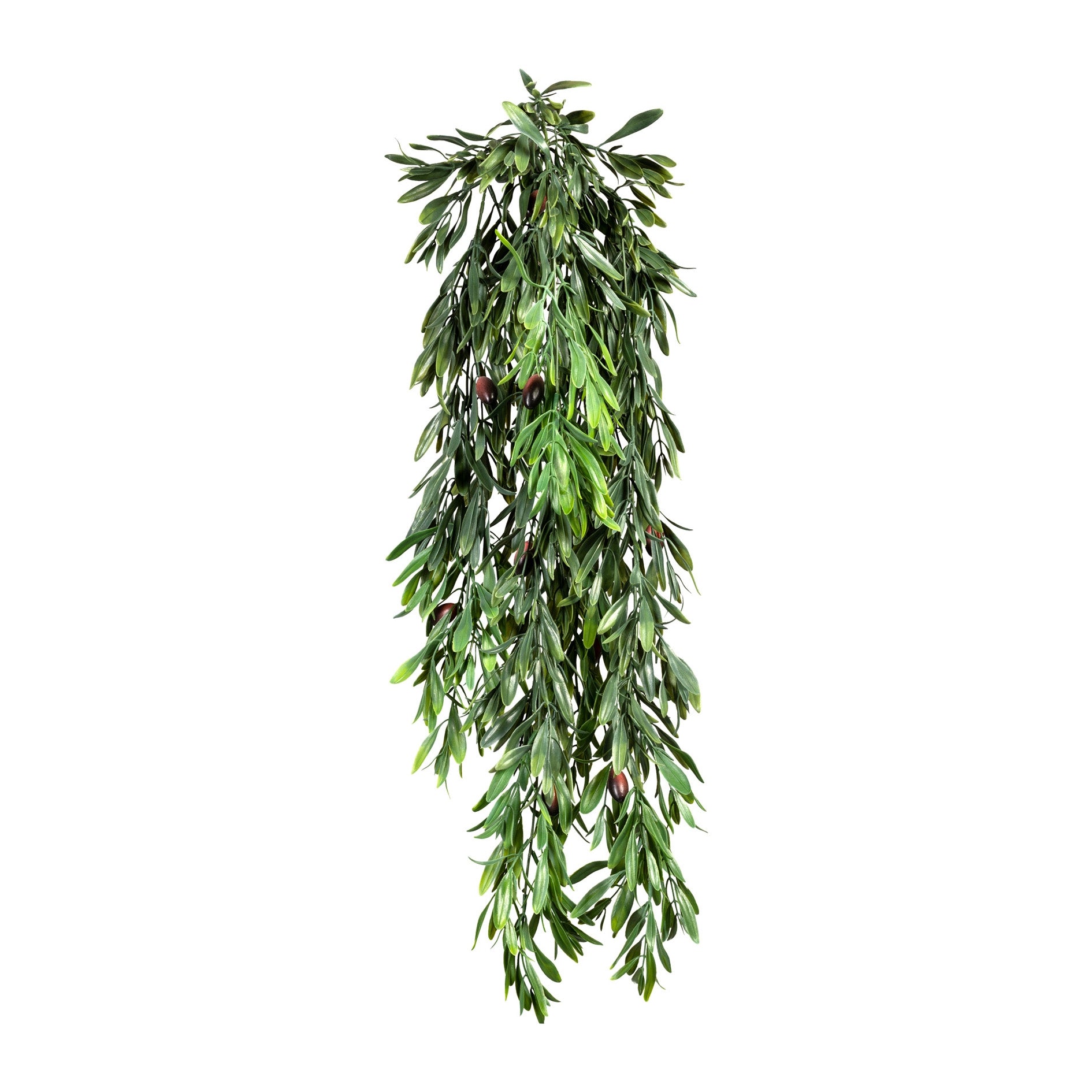 Die Kunstpflanze ist aus hochwertigem Kunststoff gefertigt, was sie besonders pflegeleicht und langlebig macht. Sie benötigt weder Wasser noch Licht und behält dennoch ihre lebendige und natürliche Ausstrahlung. Der Hänger ist detailreich gestaltet und umfasst insgesamt 10 dekorative Olivenfrüchte, die der Pflanze einen authentischen Touch verleihen.