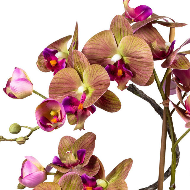 Phalaenopsisarrangement ca. 70 cm, grün-lila, in Keramikvase braun 27x15x10 cm, Real Touch Kunstpflanze