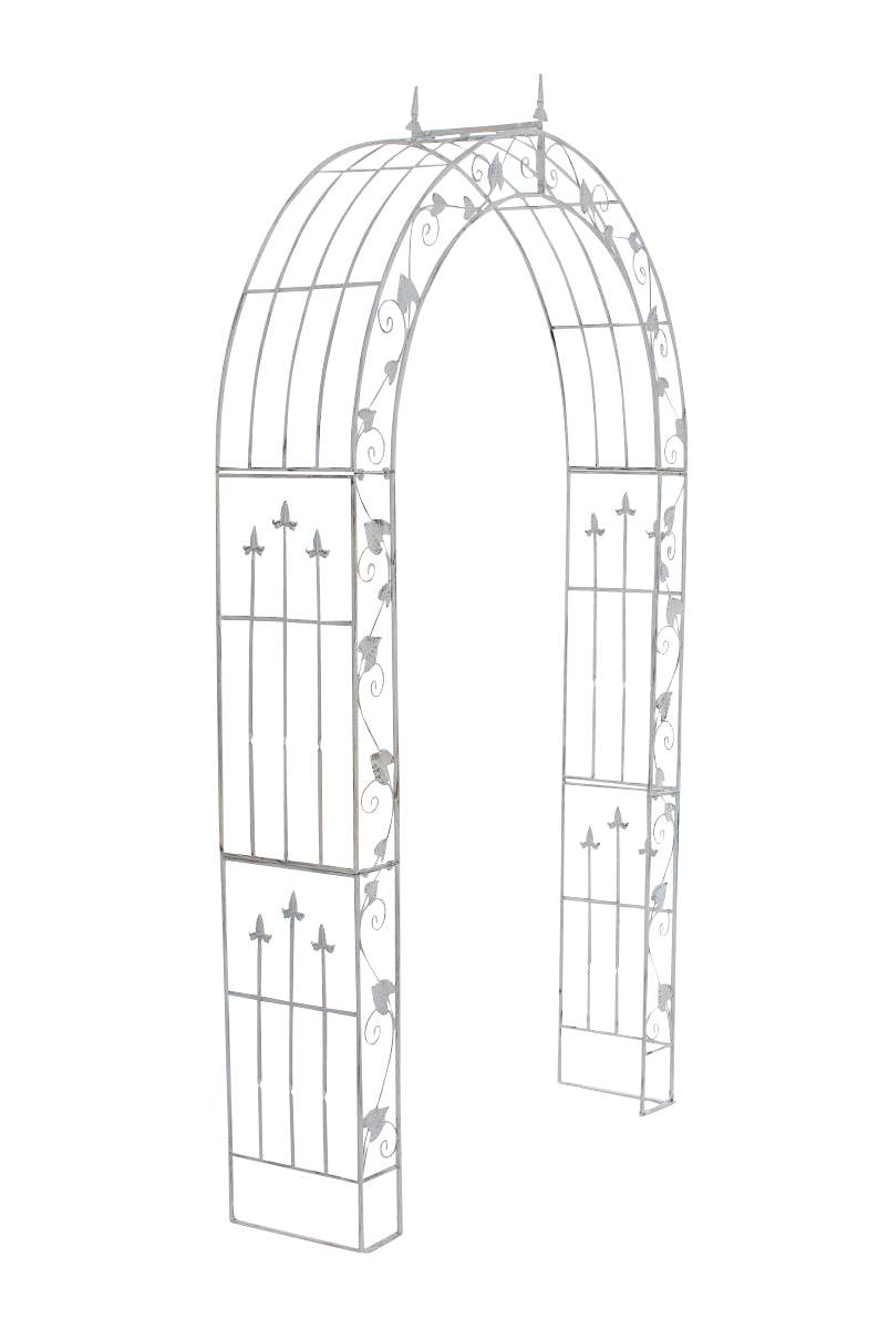 Exklusiver Rosenbogen aus pulverbeschichtetem Eisen. Dieser Torbogen hat ein elegantes Design und ist die ideale Rankhilfe für alle Rankpflanzen, wie z.B. Rosen oder Efeu. Der Rosenbogen aus stabilem Eisen ist handgefertigt. Zur Befestigung dienen insgesamt sechs vorgefertigte Löcher im Fuß des Rosenbogens. Hiermit kann die Rankhilfe leicht und schnell am Boden standsicher fixiert werden. Bitte beachten Sie, dass keine Erdhaken zur Befestigung im Lieferumfang enthalten sind. Diese können separat bestellt werden.