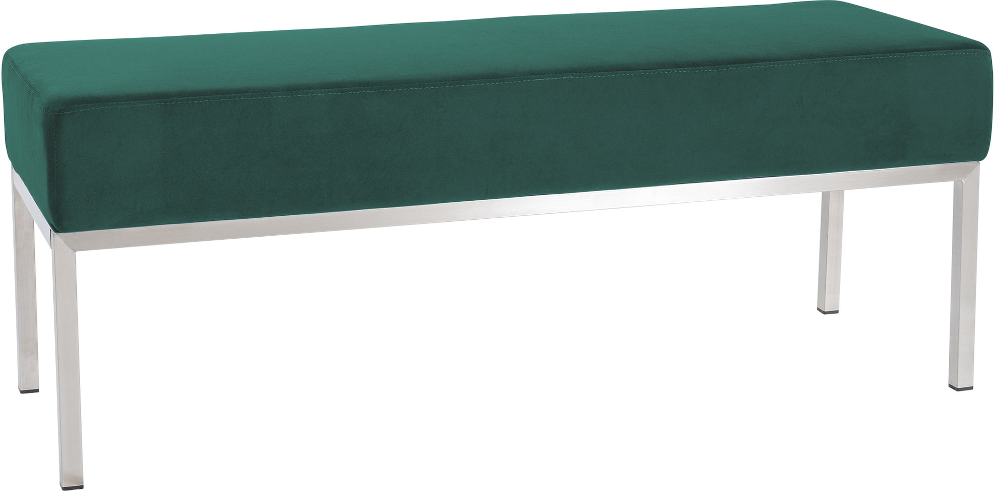Unsere Design-Sitzbank Lamega überzeugt als bequem gepolstertes Sitzmöbel, das sich elegant und formschön in den Raum integriert. Für besonderen Komfort sorgt die extra dick gepolsterte Sitzfläche mit Samtbezug. Das hochwertige Gestell ist aus gebürstetem Edelstahl und bietet viel Stabilität.