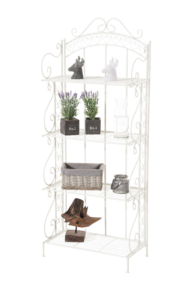 Eine Beschichtung (pulverbeschichtetes Eisen) macht dieses Regal sehr hochwertig und extrem langlebig. Die liebevollen Verzierungen im Landhausstil sehen sehr schön aus und verleihen einen antiken Charakter.