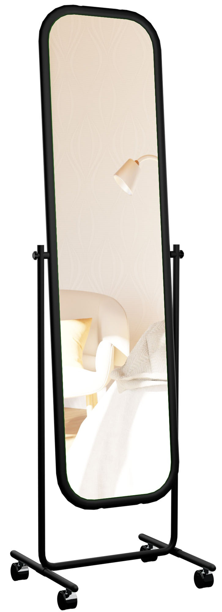 Der Spiegel ist praktischerweise stufenlos schwenkbar und und kann festgestellt werden. Mit einem stabilem Gestell aus Metall steht der Ganzkörperspiegel auf vier Kunststoffrollen, die um 360 Grad drehbar sind. Dadurch ist der Spiegel leicht zu bewegen.