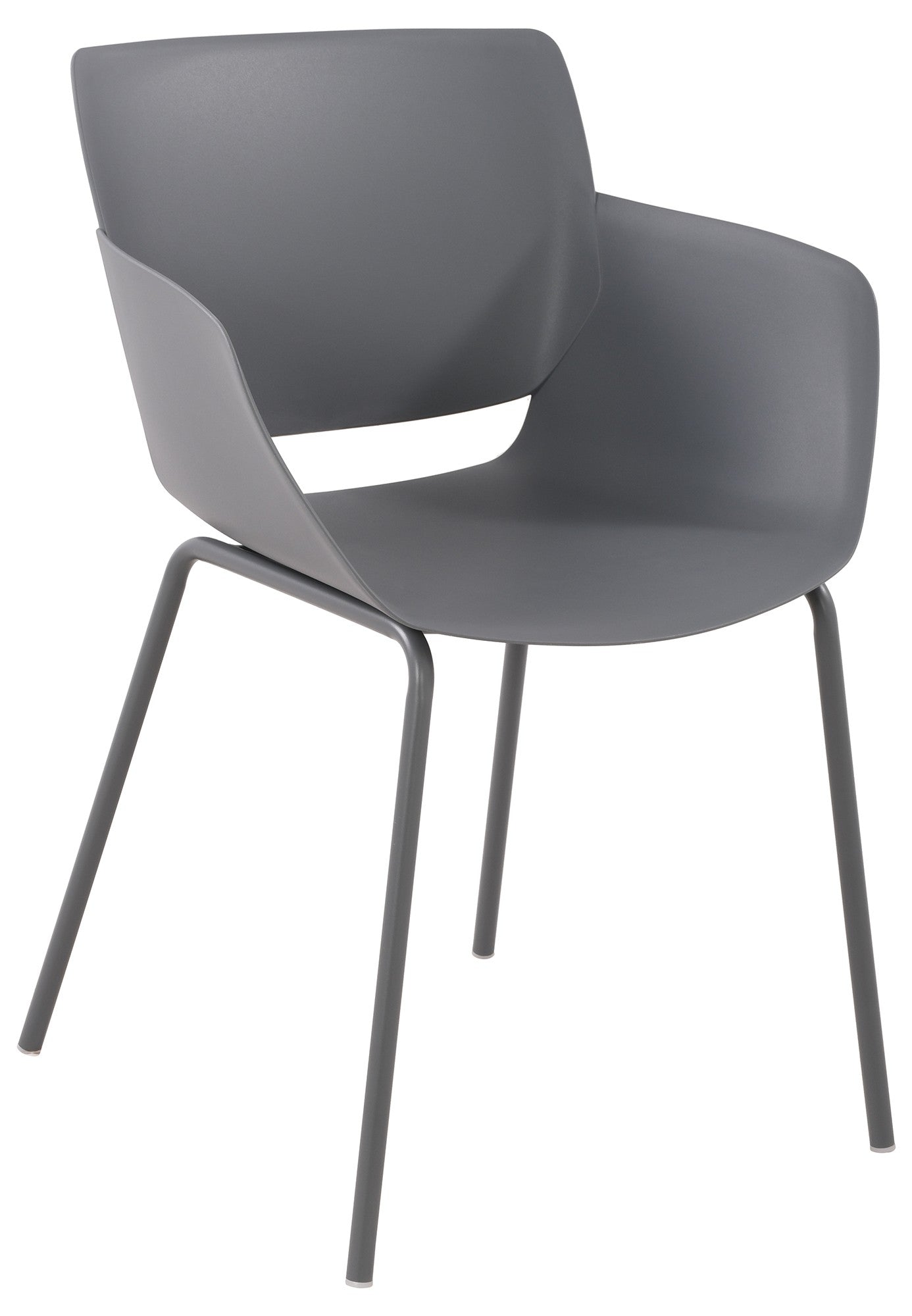 Das Stuhlgestell ist aus pulverbeschichtetem Stahl gefertigt, sodass es korrosionsbeständig ist und nicht rostet. Die Farben von Sitzschale und Stuhlgestellen sind aufeinander abgestimmt.